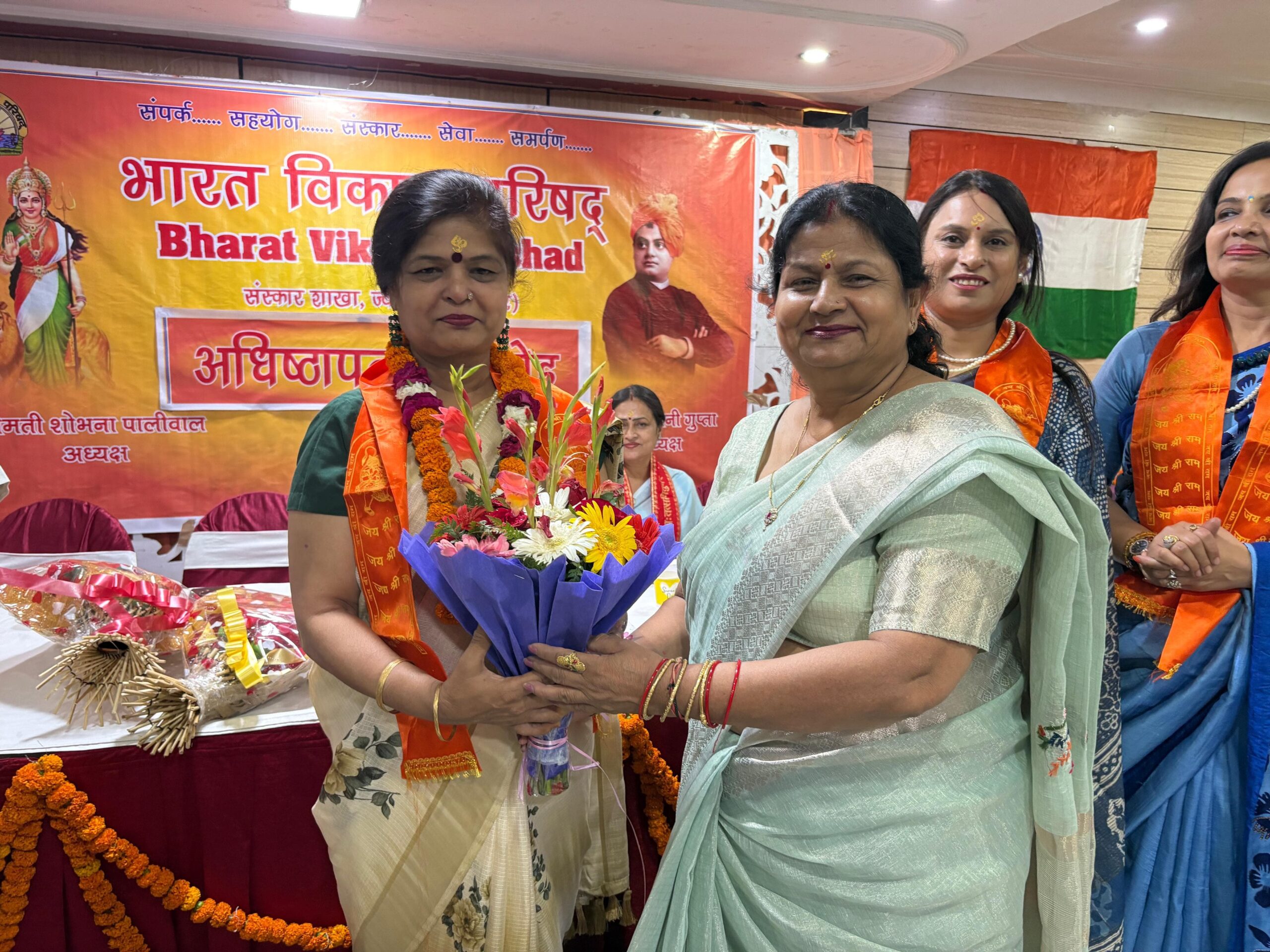 हरिद्वार..भारत विकास परिषद हरिद्वार संस्कार शाखा का अधिष्ठापन समारोह भव्य रूप से संपन्न हुआ. जिसमें परिषद के देहरादून रुड़की एवं हरिद्वार के सदस्यों पदाधिकारियों के अलावा हरिद्वार के गणमान्य व्यक्तियों ने प्रतिभाग किया. कार्यक्रम में परिषद की प्रदेश अध्यक्ष श्रीमती मनीषा सिंघल एवं सचिव संजय गर्ग ने श्रीमती शोभना पालीवाल को लेपल पिन लगाकर अध्यक्ष पद एवं सचिव श्रीमती नीलम तोमर एवं वित्त सचिव श्रीमती शालिनी गुप्ता सहित सम्पूर्ण कार्य समिति को शपथ दिलाई. कार्यक्रम में मुख्य अतिथि संस्कृत शिक्षा निदेशक उत्तराखंड डॉ. आनन्द भारद्वाज ने नव निर्वाचित अध्यक्ष शोभना पालीवाल को बधाई देते हुए कहा कि भारत विकास परिषद देश में भारतीय संस्कृति को ज़न ज़न तक पहुँचा कर सेवा कार्य कर रहीं है उन्होंने कहा कि भारत की हजारों साल पुरानी संस्कृति जिससे हम अनजान हो पश्चिम संस्कृति को अपना रहे हो जो हमें पतन की ओर ले जा रहीं है. खचाखच भरे सभागार में अत्यंत भव्य समारोह में परिषद में 22 नए सदस्यों को भी सपत्नीक शपथ दिला कर स्वागत किया गया. निवर्तमान अध्यक्ष श्रीमती प्रमिला दत्ता ने सम्पूर्ण वर्ष किए कार्यो को एक रिपोर्ट के रूप में संबोधित करते हुए सभी का आभार एवं धन्यवाद किया. अध्यक्ष शोभना पालीवाल ने अपने स्वागत भाषण में सभी का आभार व्यक्त करते हुए कहा कि परिषद के सदस्यों ने मुझे अध्यक्ष हेतु चुना में विश्वास दिलाती हूं कि आप सभी के सहयोग एवं मार्गदर्शन समाज हित हेतु हम सर्वश्रेष्ठ कार्य कर सकेंगे. कार्यक्रम को प्रदेश अध्यक्ष एवं सचिव के अतिरिक्त उपस्थित गणमान्य व्यक्तियों ने अध्यक्ष शोभना पालीवाल को फूल मालाओं एवं पुष्प गुच्छ देकर स्वागत किया. इस अवसर पर विद्या विहार एकेडमी की छात्राओं आद्या एवं अनन्या ने शानदार नृत्य नाटिका प्रस्तुत की. कार्यक्रम में रश्मि चौहान, निखिल वर्मा, अन्य शाखाओं के पदाधिकारियों श्रीमती सुधा तिवारी, श्रीमती शिवानी गौर, आशुतोष शर्मा, विकास गिरी कुशल श्रीवास्तव ,विजय सेठी, अमिताभ वत्स, अमर चौहान, विनय भारद्वाज, मुकेश भार्गव, जगदीश लाल पाहवा, राजकुमार शर्मा, राज छाबड़ा, एन. के. गुप्ता, अजित तोमर आदि के अतिरिक्त अनेक संस्थाओं के प्रतिनिधियों ने भाग लिया. कार्यक्रम का संचालन डॉ. विजयेंद्र पालीवाल एवं श्रीमती दिव्या भारद्वाज ने किया.