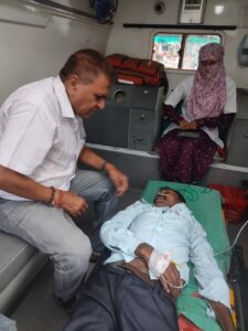 हरिद्वार। राजकीय आयुर्वेदिक महाविद्यालय के प्रोफेसर डॉ नरेश चौधरी श्यामपुर में सड़क किनारे तड़फ रहे दुर्घटना में गंभीर घायल बिजनौर निवासी व्यक्ति के लिए देवदूत बनकर पहुंचे। हुआ यूं कि रेड क्रॉस के सचिव डॉ नरेश चौधरी गुरुवार शाम साढ़े 5 बजे करीब श्यामपुर स्थित ध्रुव अस्पताल से वापस अपने घर लौट रहे थे। अपने निजी वाहन से लौट रहे डॉ नरेश चौधरी को रास्ते में सड़क किनारे दुर्घटना में गंभीर रूप से घायल एक व्यक्ति पड़ा मिला। पूरी तरह से लहूलुहान व्यक्ति को देखकर डॉ नरेश चौधरी ने अपना वाहन रुकवा कर उसका स्वास्थ्य परीक्षण किया और गंभीर हालत देखकर उसे अपने वाहन से जिला अस्पताल ले गए।
