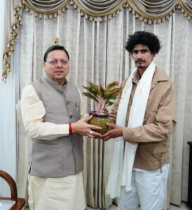 मुख्यमंत्री श्री पुष्कर सिंह धामी ने माउंट एवरेस्ट को विजय करने वाले युवा पर्वतारोही श्री रोहित भट्ट को आज मुख्यमंत्री आवास में सम्मानित किया | इस अवसर पर श्री रोहित भट्ट ने अपनी अब तक की विभिन्न पर्वतारोहण यात्राओं और अनुभवों को साझा किया।