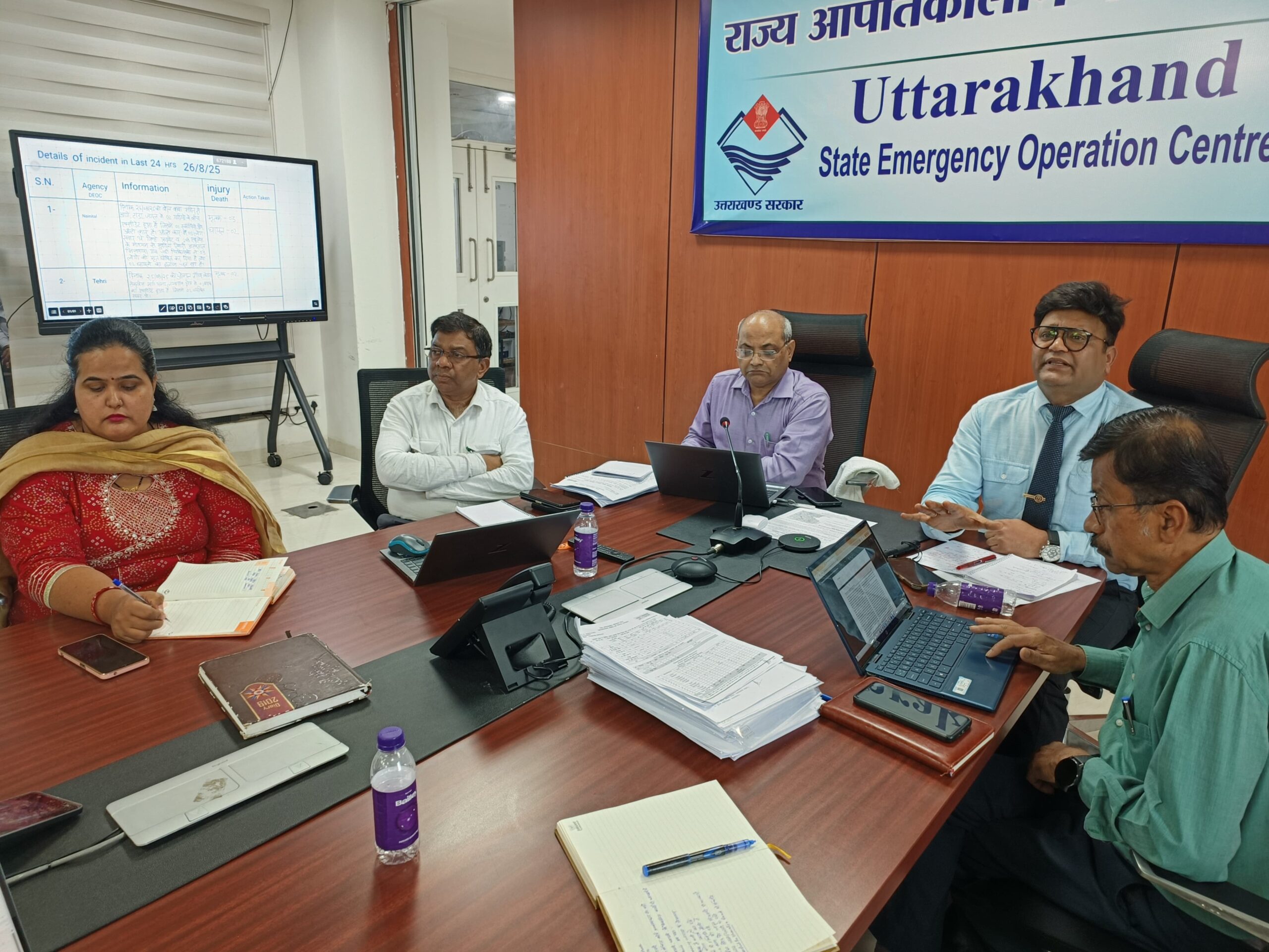 इस अवसर पर अपर सचिव/यूएसडीएमए के अपर मुख्य कार्यकारी अधिकारी प्रशासन श्री आनंद स्वरूप, संयुक्त मुख्य कार्यकारी अधिकारी मो0 ओबैदुल्लाह अंसारी, यूएलएमएमसी के निदेशक डॉ. शांतनु सरकार आदि मौजूद थे। सचिव आपदा प्रबंधन एवं पुनर्वास श्री विनोद कुमार सुमन, आईजी एसडीआरएफ श्री अरुण मोहन जोशी, कमांडेंट श्री अर्पण यदुवंशी ने बैठक में ऑनलाइन प्रतिभाग किया।