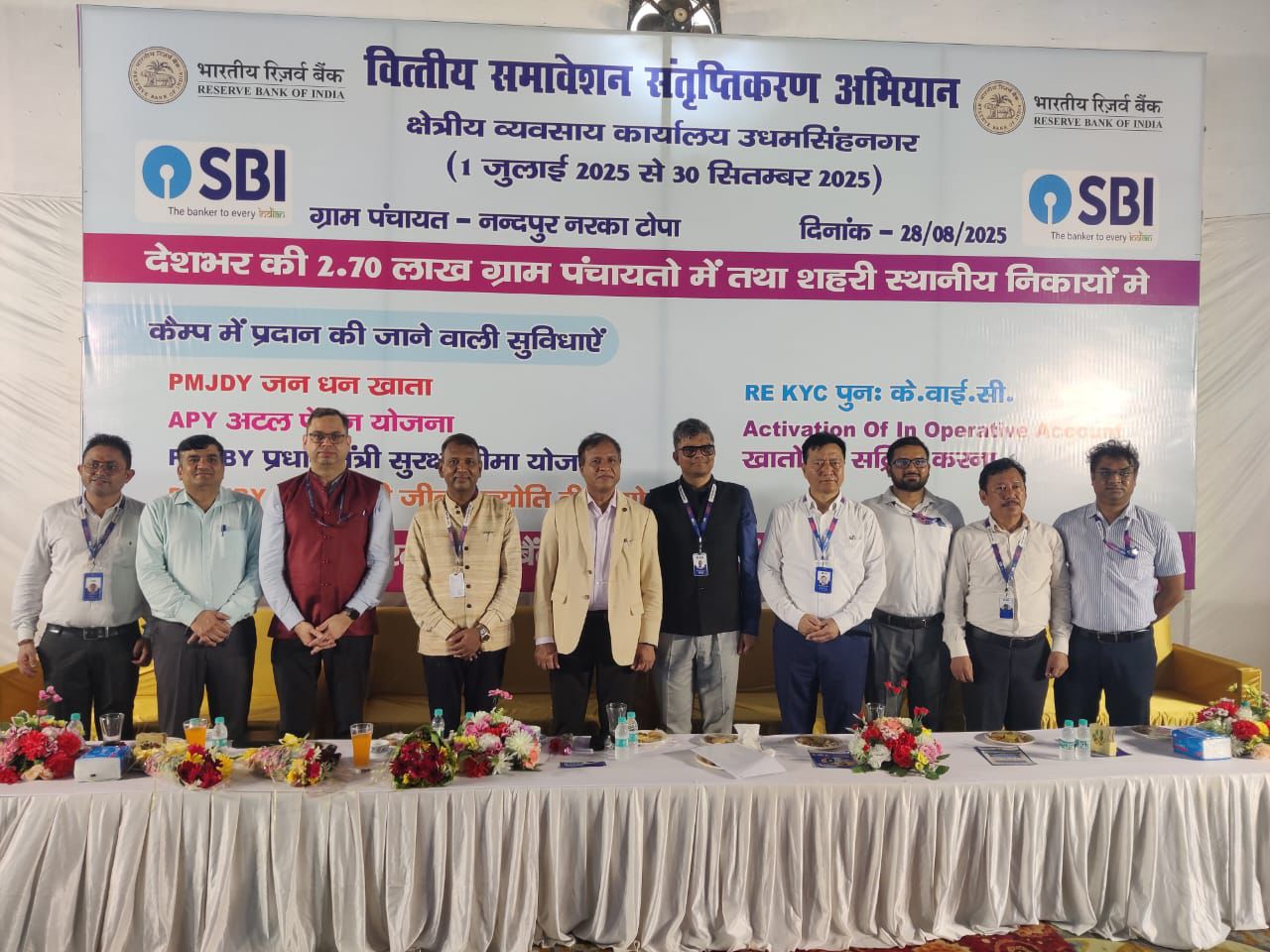 भारतीय स्टेट बैंक, शाखा बाजपुर के सौजन्य से आज दिनांक 28 अगस्त 2025 को एक सैचुरेशन कैम्प का आयोजन किया गया। इस अवसर पर मुख्य अतिथि के रूप में श्री अरविंद कुमार, क्षेत्रीय निदेशक, भारतीय रिज़र्व बैंक, उपस्थित रहे।