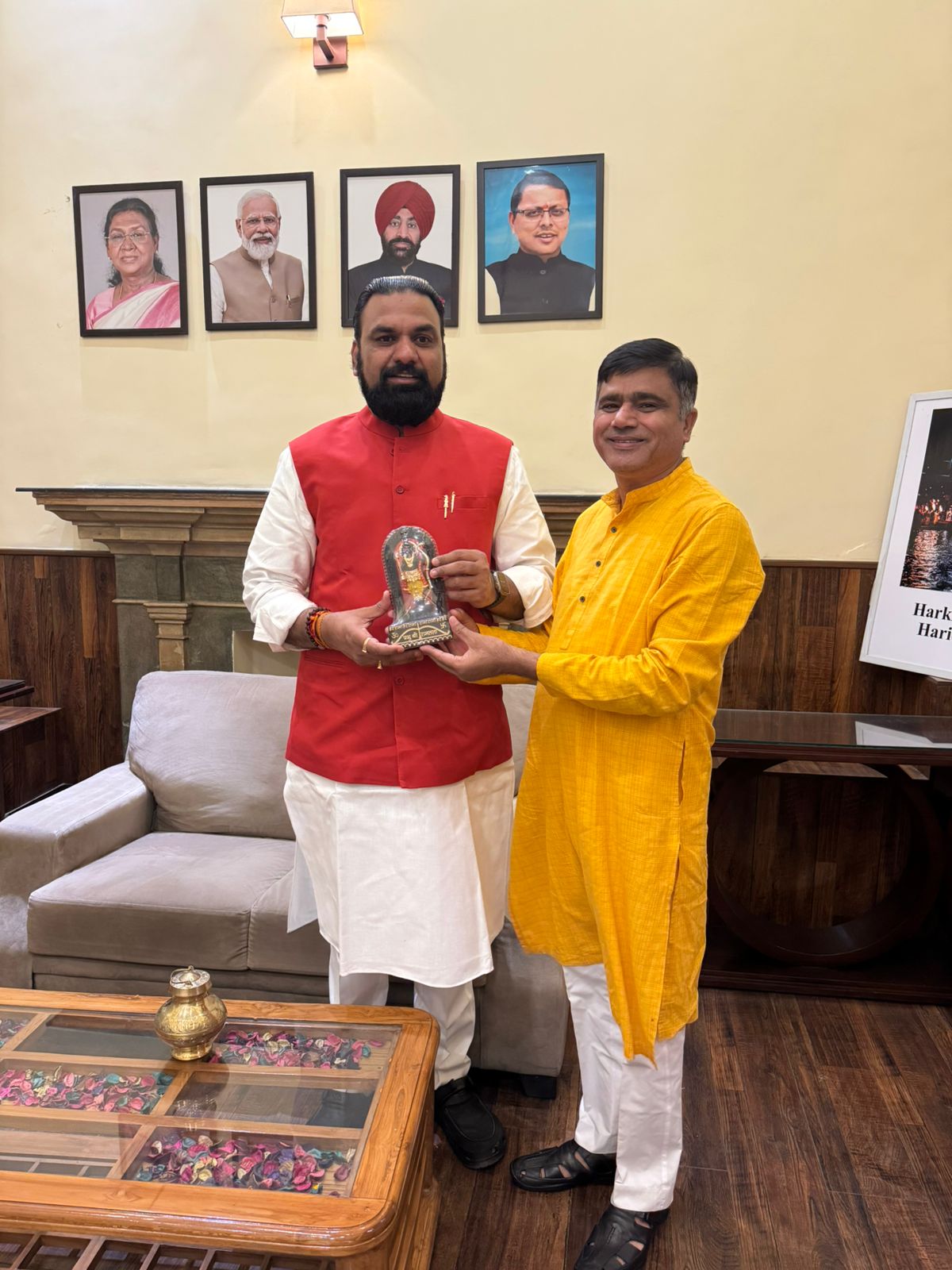 राज्य मंत्री सुनील सैनी ने बिहार के उपमुख्यमंत्री श्री सम्राट चौधरी कुशवाह जी के हरिद्वार आगमन पर गंगाजली एवं भगवान श्री राम की प्रतिमा भेंट कर हार्दिक अभिनंदन एवं स्वागत किया l