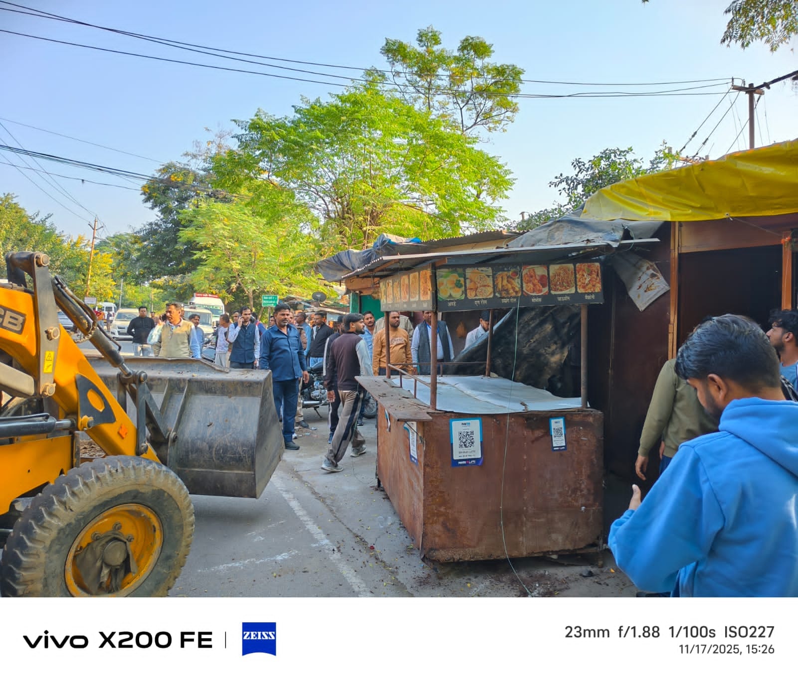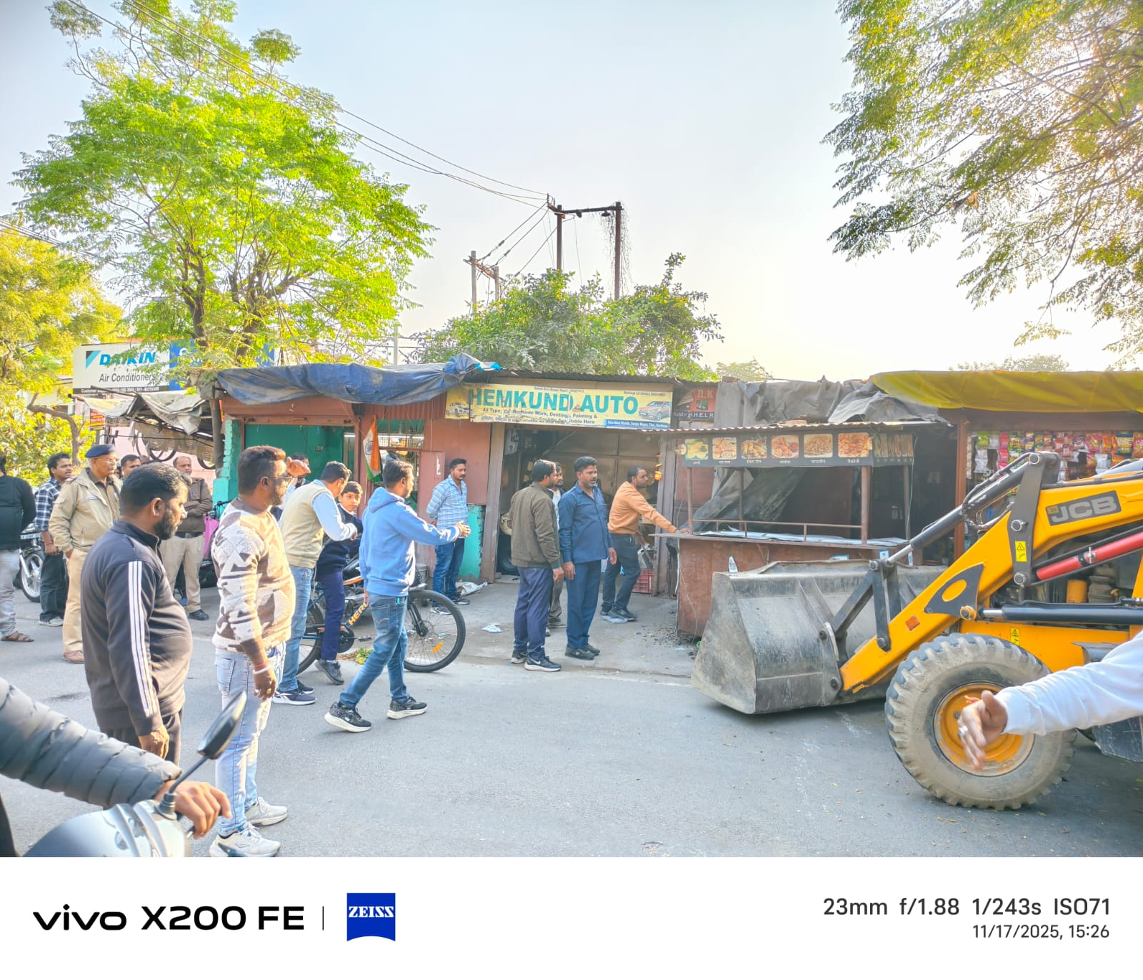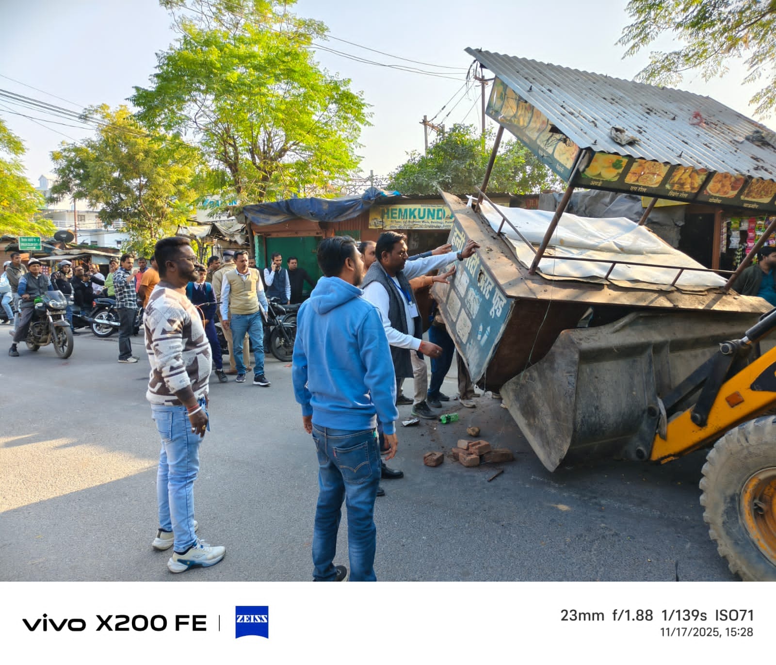 *नगर निगम–पुलिस की संयुक्त कार्रवाई: वार्ड 17 में अवैध खोखे ध्वस्त, दो ठेलियाँ जप्त*