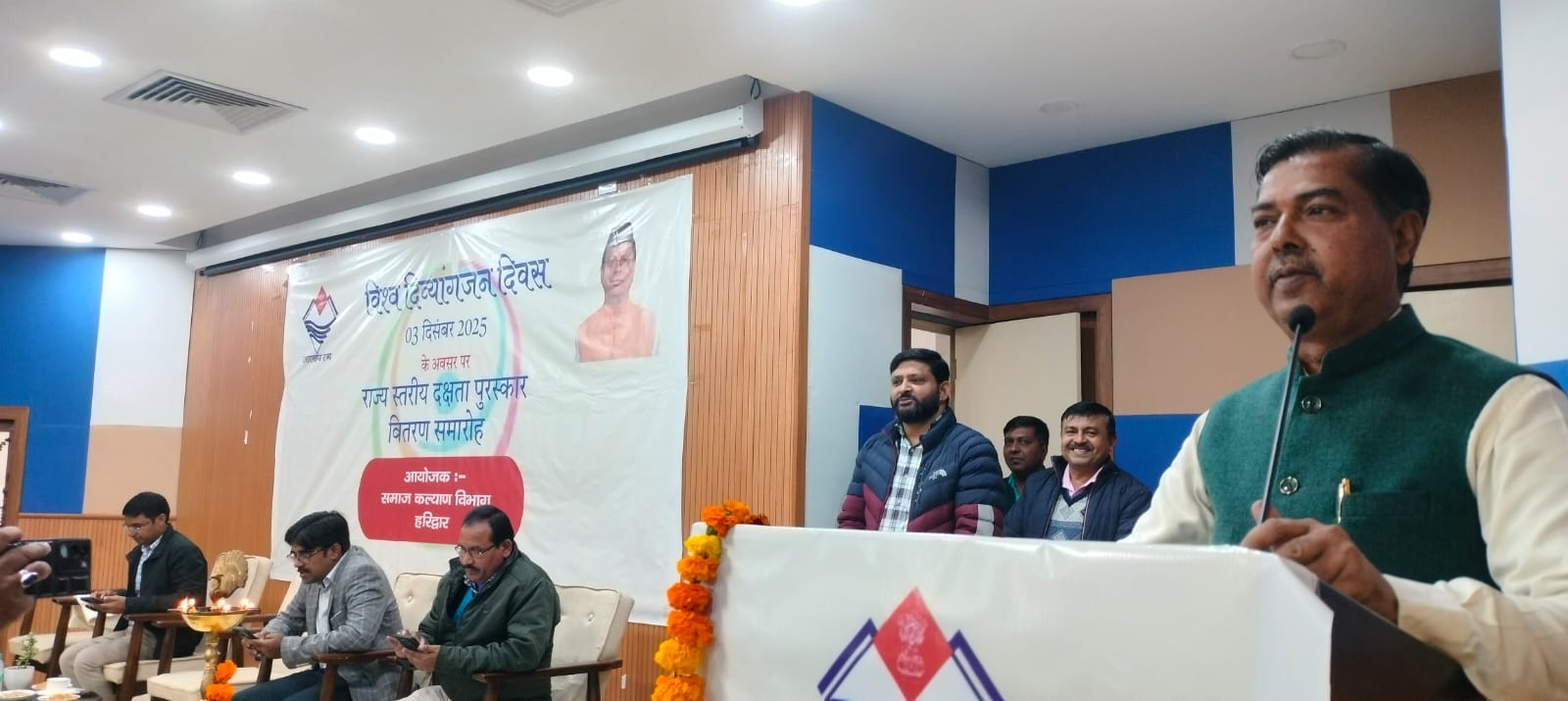हरिद्वार। विश्व दिव्यांगजन दिवस के अवसर पर समाज कल्याण विभाग के तत्वाधान में राज्य स्तरीय दक्षता पुरस्कार वितरण समारोह कार्यक्रम विकास भवन के ऑडिटोरियम में आयोजित किया गया जिसमें मुख्य अतिथि रानीपुर विधायक आदेश चौहान ने दीप प्रज्वलित कर कार्यक्रम का शुभारंभ किया।