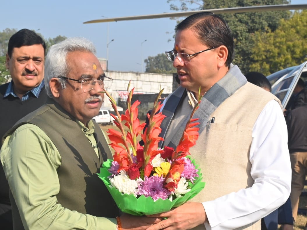हेलीपैड दयानन्द स्टेडियम गुरुकुल कांगड़ी पहुंचने पर जिलाधिकारी मयूर दीक्षित एवं वरिष्ठ पुलिस अधीक्षक प्रमेंद्र सिंह डोभाल ने श्री भगवत गीता भेंटकर स्वागत किया एवं भाजपा पदाधिकारियों एवं कार्यकर्ताओं द्वारा पुष्प मालाओं के साथ स्वागत किया।