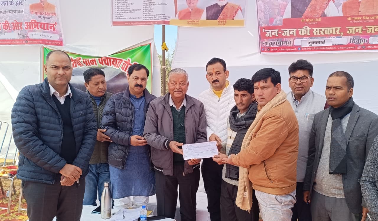 “जन-जन की सरकार, जन-जन के द्वार” अभियान के तहत चंपावत जिले में शनिवार को चौड़ीराय तथा खर्ककार्की में बहुउद्देशीय शिविरों को आयोजन हुआ। लोहाघाट ब्लॉक की न्याय पंचायत भुमलाई के अंतर्गत चौड़ीराय में आयोजित शिविर में जिलाधिकारी मनीष कुमार ने ग्रामीणों के साथ जमीन पर बैठकर संवाद किया तथा जन-समस्याओं का निस्तारण सुनिश्चित कराया। इस दौरान 500 से अधिक शिकायतें एवं समस्याओं को दर्ज किया गया। शिविर में पंचेश्वर में आहत हुए स्व. लक्ष्मण चन्द पुत्र श्री प्रकाश चन्द के परिजनों को मुख्यमंत्री राहत कोष से ₹4 लाख की सहायता के अतिरिक्त ₹1 लाख की अतिरिक्त आर्थिक सहायता भी प्रदान की गई। रा.उ.प्राथमिक विद्यालय खर्ककार्की में आयोजित शिविर के दौरान रमेला निवासी 75 वर्षीय श्रीमती चंचला देवी के आवास की समस्या आमने आने पर जिलाधिकारी ने मौके पर पर ही औपाचारिकताएं पूरी कराते हुए आवास स्वीकृति की कार्रवाई प्रारंभ कराई। शिविर में 557 से अधिक शिकायतें एवं मांगें प्रस्तुत की गईं, जिनमें से 450 से मामलों का मौके पर ही निस्तारण किया गया। इस दौरान दायित्वधारी श्री श्याम नारायण पांडे, ब्लॉक प्रमुख चम्पावत श्रीमती अंचला बोहरा, सहित अनेक जन प्रतिनिधि, विभिन्न विभागों के अधिकारी-कर्मचारी एवं बड़ी संख्या में ग्रामीण उपस्थित रहे।