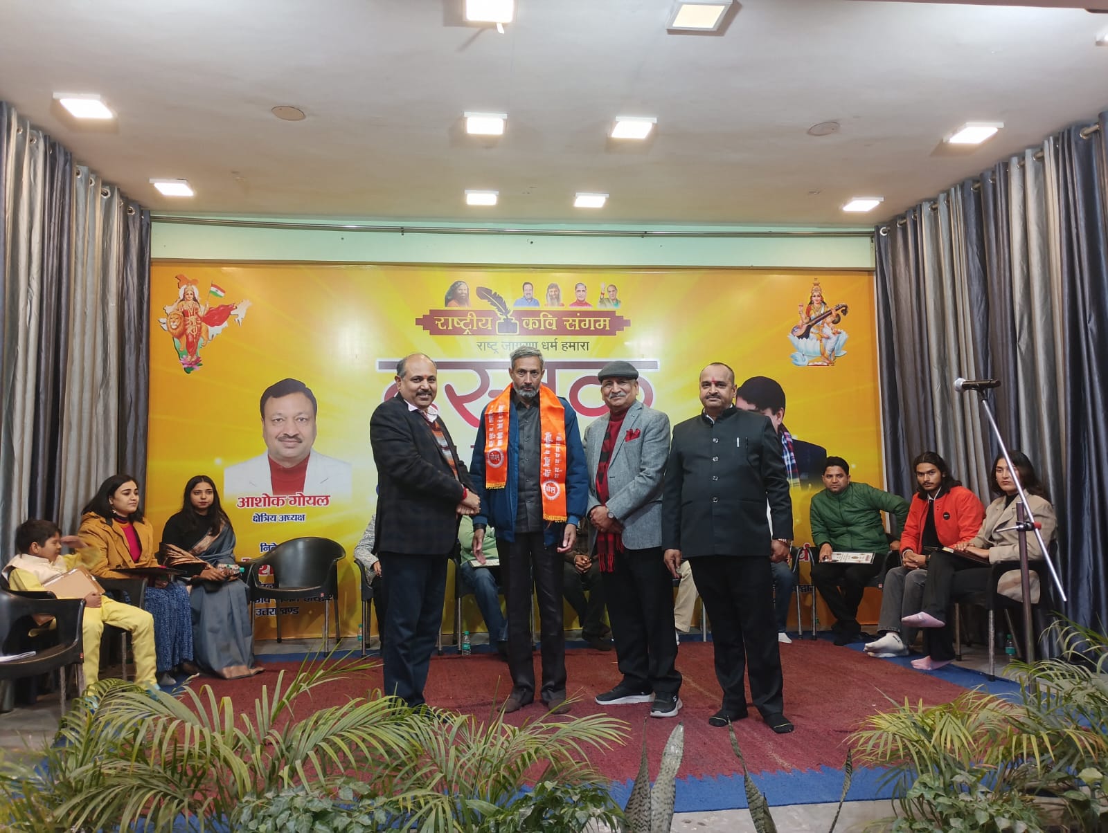 दस्तक नई पीढ़ी कार्यक्रम में नवगठित सिटी प्रेस क्लब के अध्यक्ष ठाकुर मनोज मनोजानन्द का सम्मान हरिद्वार ज्वालापुर स्थित राष्ट्रीय कवि समागम द्वारा आयोजित दस्तक नई पीढ़ी कार्यक्रम में नवगठित सिटी प्रेस क्लब के अध्यक्ष ठाकुर मनोज मनोजानन्द का मुख्य विकास अधिकारी श्री ललित नारायण मिश्र ने अंग पट पहनकर स्वागत किया इस अवसर पर बोलते हुए सिटी प्रेस क्लब के अध्यक्ष ठाकुर मनोज मनोजानंद ने कहा साहित्यकार एवं कवि साहित्य की निधि से समाज को अपनी साहित्य सरिता से दिशा प्रदान कर समाज में नई चेतना उत्पन्न करते हैं सभी कार्यक्रम आयोजन करता साहित्यकार कवियों तथा श्रोताओं का मैं तहे दिल से अभिनंदन करता