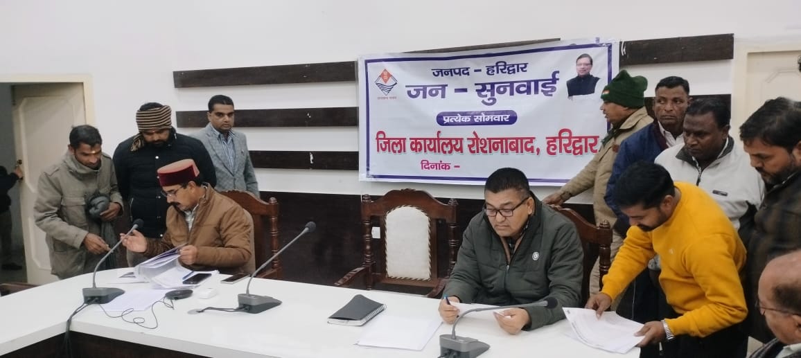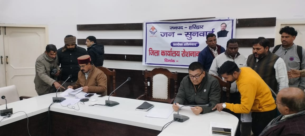 हरिद्वार।   जनपदवासियों की समस्याओं का त्वरित निराकरण करने के उद्देश्य से जिलाधिकारी मयूर दीक्षित के निर्देशन में अपर जिलाधिकारी(प्रशासन) पी आर चौहान एवं अपर जिलाधिकारी (वित्त एवं राजस्व) दीपेंद्र सिंह नेगी की अध्यक्षता में जिला कार्यालय सभागार में जन सुनवाई कार्यक्रम आयोजित किया गया, जिसमें विभिन्न विभागों से संबंधित 21 शिकायते/ समस्याएं दर्ज कराई गई जिसमें 09 समस्याओं का मौके पर निराकरण किया गया शेष समस्याओं को निस्तारण हेतु संबंधित विभागों को प्रेषित किया गया।