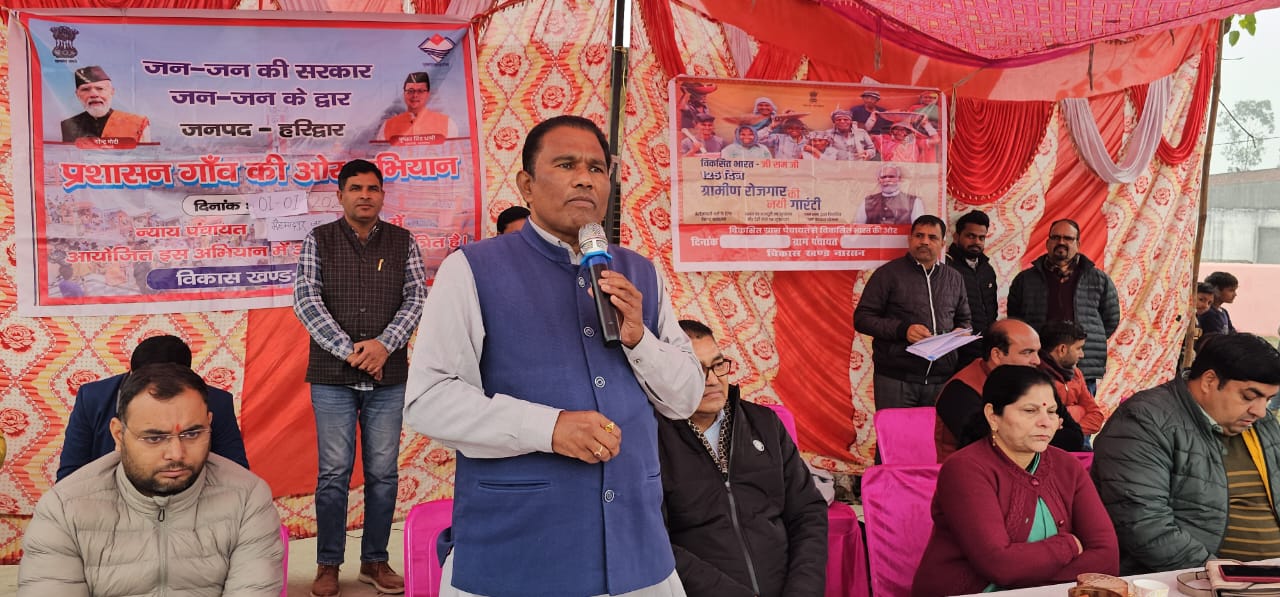 कार्यक्रम को संबोधित करते हुए उपाध्यक्ष, समाज कल्याण योजनाएं अनुश्रवण समिति (राज्यमंत्री स्तर)देशराज कर्णवाल ने कहा कि प्रदेश के यशस्वी मुख्यमंत्री श्री पुष्कर सिंह धामी जी के निर्देशानुसार प्रदेश की सभी न्याय पंचायतों में यह अभियान चलाया जा रहा है। इसका उद्देश्य विभिन्न विभागों द्वारा संचालित जन-कल्याणकारी योजनाओं का लाभ पात्र नागरिकों तक पहुँचाना तथा उनकी समस्याओं का त्वरित समाधान सुनिश्चित करना है।शिविर में विभिन्न विभागों की जन-कल्याणकारी योजनाओं के माध्यम से सैकड़ों क्षेत्रवासियों को लाभान्वित किया गया। इस दौरान क्षेत्रवासियों द्वारा विभिन्न विभागों से संबंधित कुल 75 समस्याएं दर्ज कराई गईं, जिनमें से 29 शिकायतों का मौके पर ही निस्तारण कर दिया गया।जिनमें भूमि विवाद, अतिक्रमण, विद्युत विभाग के बिल, जलभराव, चकरोड़ एवं साफ-सफाई से जुड़ी समस्याएं प्रमुख रहीं।उन्होंने कहा कि बहुउद्देशीय शिविर के माध्यम से क्षेत्रीय जनता को भरपूर लाभ हो रहा है।