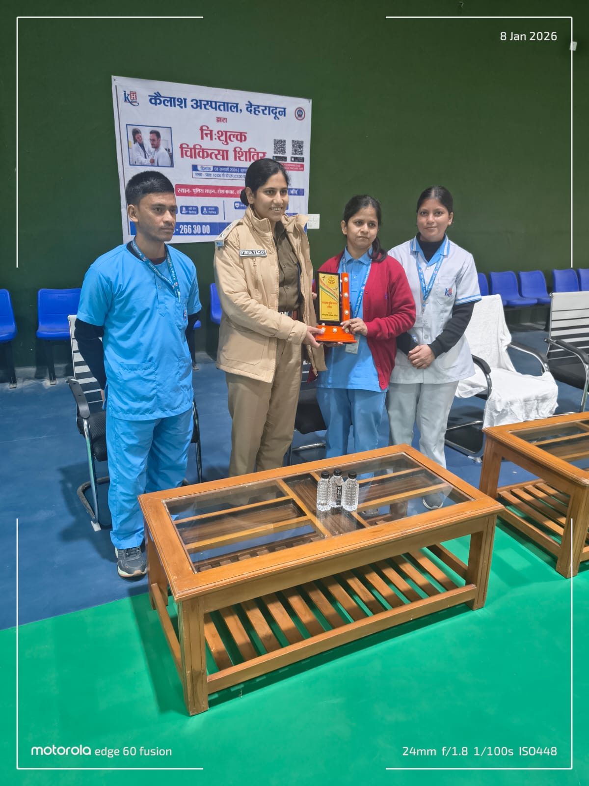 आज दिनांक 08/01/2026 को एसएसपी हरिद्वार की पहल पर पुलिस लाइन, हरिद्वार में कैलाश हॉस्पिटल, देहरादून के सहयोग से एक निशुल्क स्वास्थ्य शिविर का आयोजन किया गया।