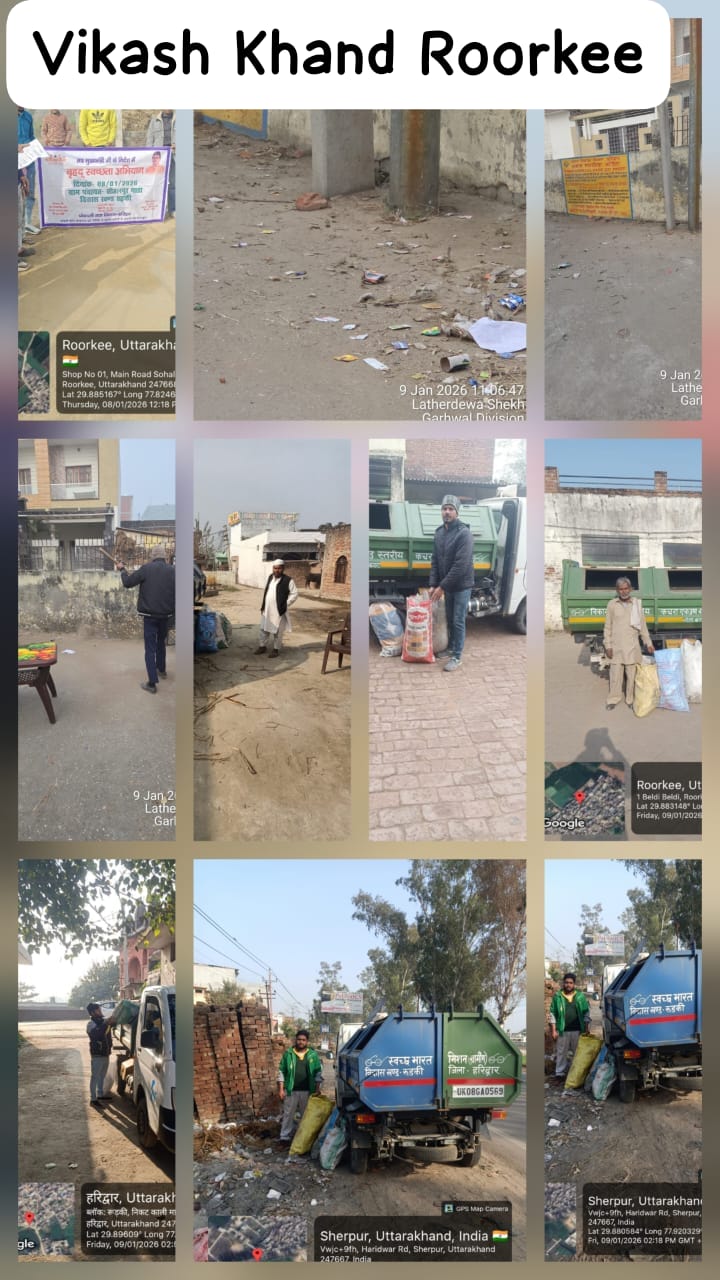 खंड विकास अधिकारी रुड़की ने अवगत कराया है कि रुड़की क्षेत्रांतर्गत हलवाहेडी ,ब्रह्मपुर,बेलड़ी सालहापुर में साफ अभियान चलाया गया।