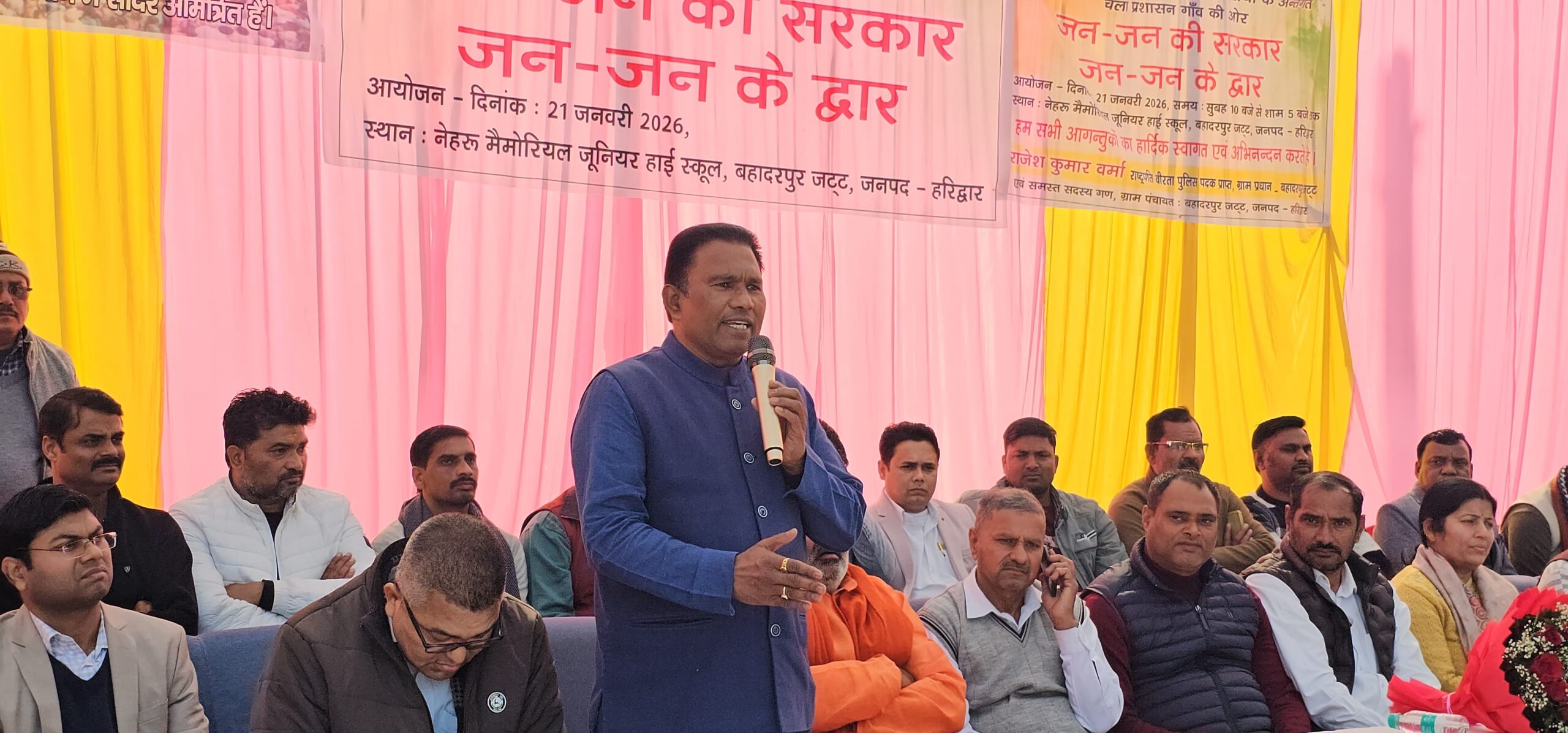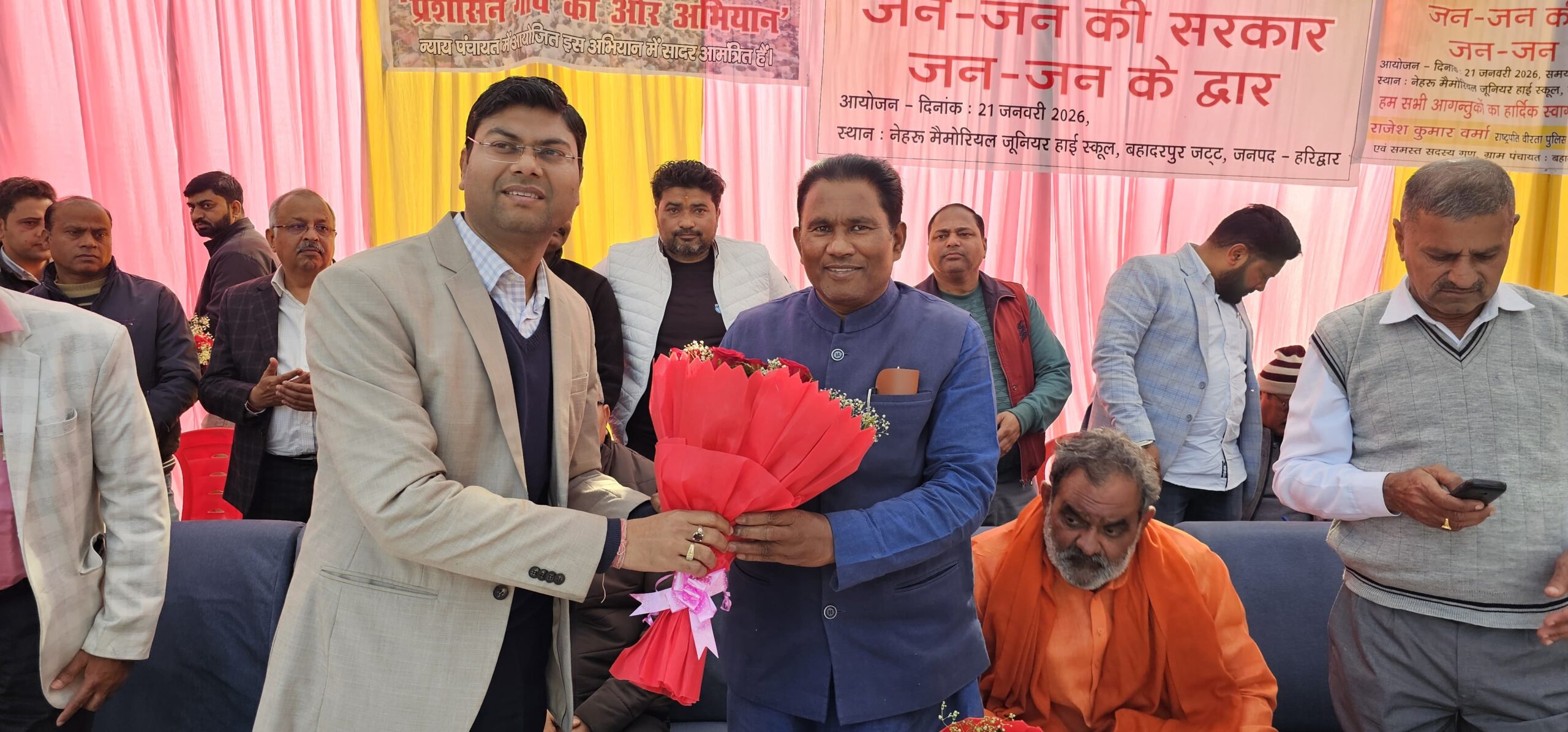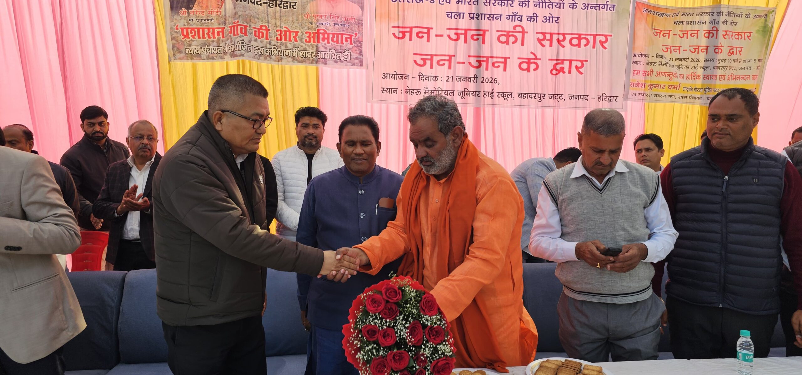 *हरिद्वार। अपर जिलाधिकारी (वित्त एवं राजस्व) दीपेंद्र सिंह नेगी की अध्यक्षता में विकासखंड बहादराबाद के न्याय पंचायत बहादुरपुर जट नेहरू मेमोरियल जूनियर हाई स्कूल में जन-जन की सरकार, जन-जन के द्वार शिविर में विभिन्न विभागों के माध्यम से संचालित जन कल्याणकारी योजनों से 768 क्षेत्रवासियों को लाभान्वित किया गया तथा  विभिन्न विभागों के माध्यम से 187 लोगों को विभिन्न प्रमाण पत्र निर्गत किए गए,इस शिविर में 2176 लोगों द्वारा किया गया प्रतिभाग ।