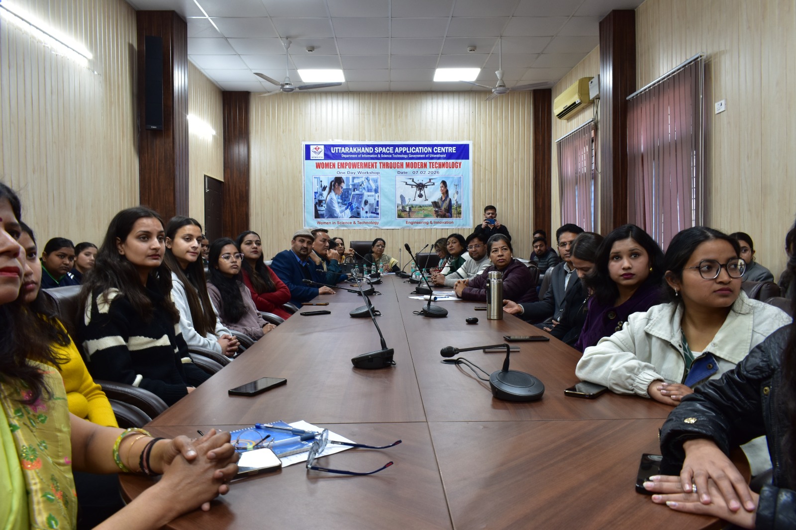 उत्तराखंड अंतरिक्ष उपयोग केंद्र (यूसैक) के सभागार मे आधुनिक तकनीक के माध्यम से महिला सशक्तिकरण विषय पर एक दिवसीय कार्यशाला का आयोजन किया गया ।