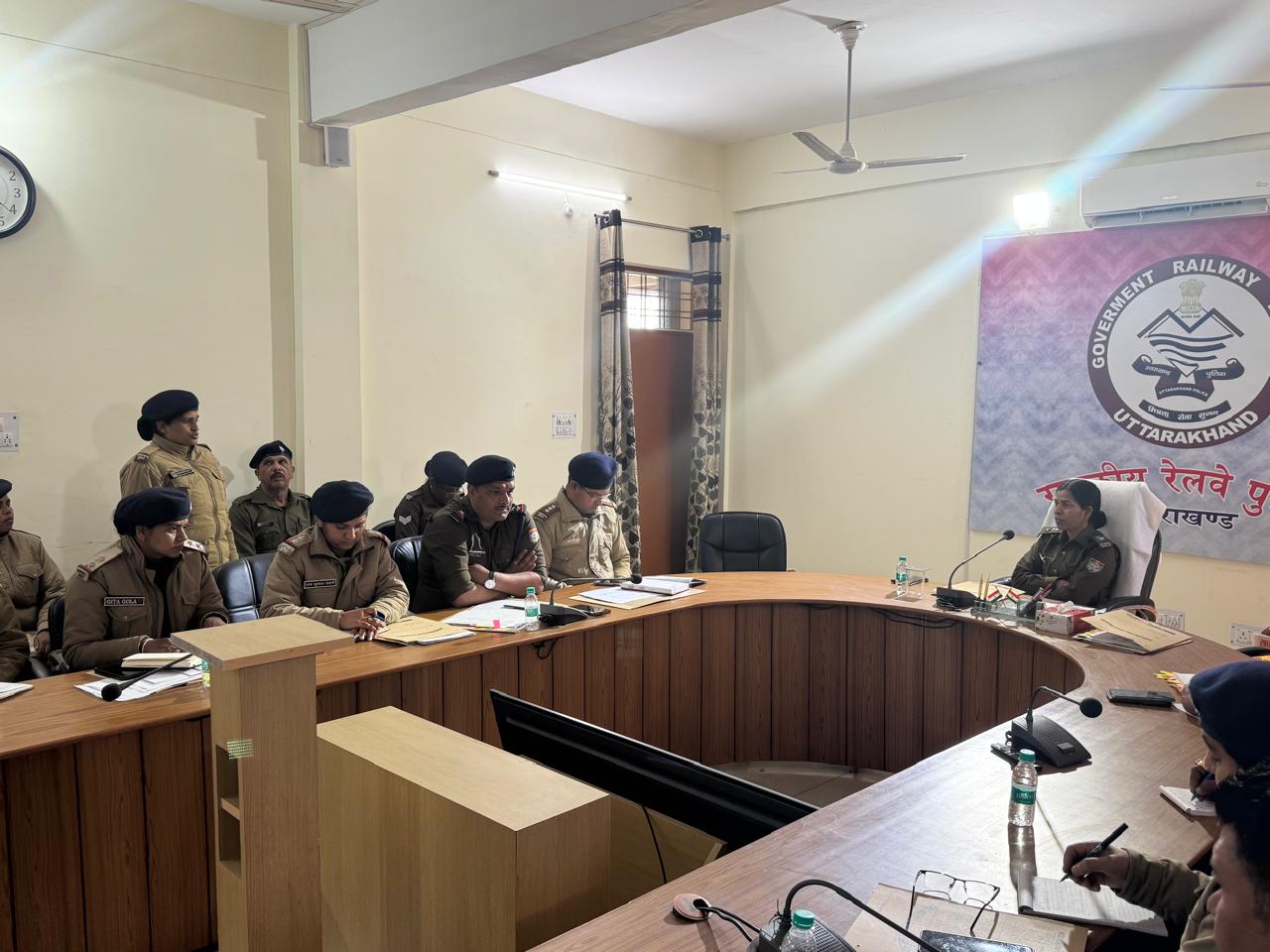 आज दिनांक 10/02/2026 को एस0पी0 जी0आर0पी0 उत्तराखण्ड, सुश्री अरुणा भारती द्वारा पुलिस कार्यालय, जीआरपी के सभागार में माह जनवरी -2026 की *अपराध गोष्ठी/सम्मेलन* लिया गया।