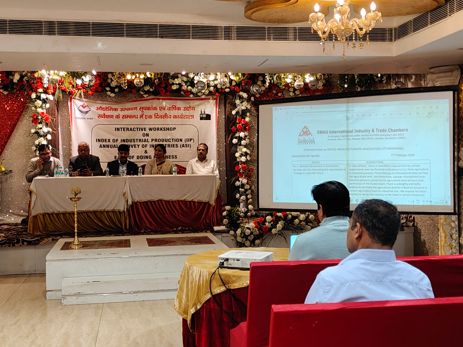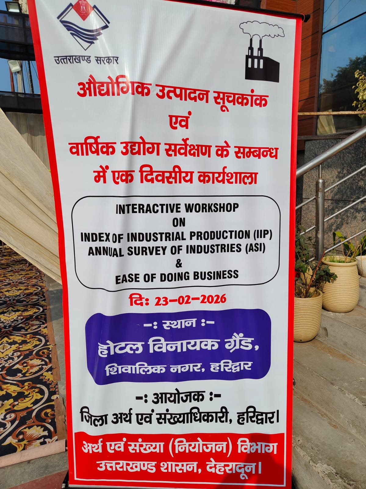 हरिद्वार । जिला अर्थ एवं संख्याधिकारी, हरिद्वार द्वारा दिनांक 23 फरवरी, 2026 को Hotal Vinayak Grand, Shivalik Nagar Haridwar में औद्योगिक उत्पादन सूचकांक (IIP) एवं वार्षिक उद्योग सर्वेक्षण (ASI) के डाटा द्रुतगति से प्राप्त करने एवं डाटा में त्रुटियों के द्विराकरण हेतु सांख्यिकीय सुदृढीकरण परियोजना (555) के अन्तर्गत कार्यशाला का आयोजन किया गया। जिसमें औद्योगिक उत्पादन सूचकांक (UP) एवं वार्षिक उद्योग सर्वेक्षण (ASI) के डाटा की महत्ता एवं Ease of doing business पर भी चर्चा की गयी। बैठक में निदेशक अर्थ एवं संख्या श्री सुशील कुमार, चैयरमैन एसोसिएशन सिडकुल डा० हरेन्द्र गर्ग, उप निदेशक अर्थ एवं संख्या श्रीमती रश्मि हलधर, अर्थ एवं संख्याधिकारी श्री गोपाल गुप्ता, जिला अर्थ एवं संख्याधिकारी श्रीमती नलिनी ध्यानी, सहायक प्रबन्धक जिला उद्योग केन्द्र श्री दिनेश चन्द्र आर्य, अपर सांख्यिकीय अधिकारी श्री आलोक कुमार, अपर सांख्यिकीय अधिकारी श्री सुन्दर तोमर, अपर सांख्यिकीय अधिकारी श्री नवीन कुमार, अपर सांख्यिकीय अधिकारी श्री राजेन्द्र कुमार, अपर सांख्यिकीय अधिकारी श्री संतोष कुमार आदि उपस्थित रहे।