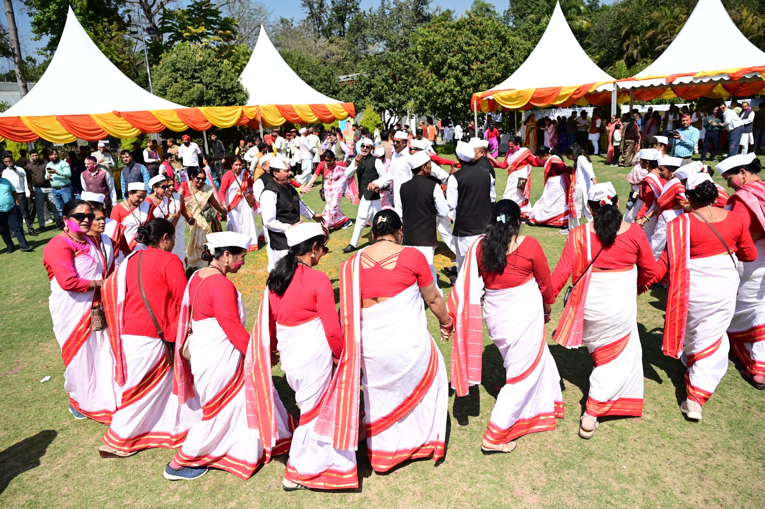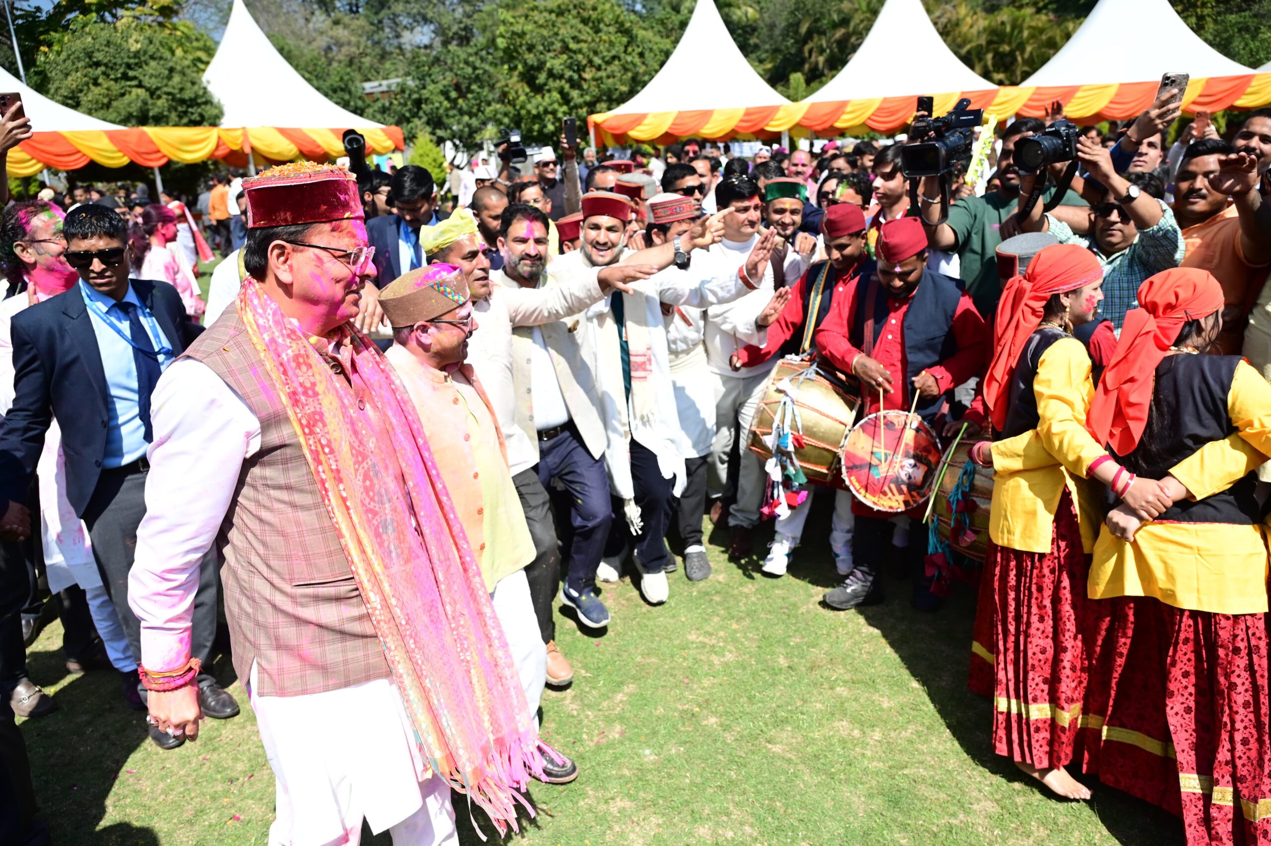 प्रदेश भर से आए लोक कलाकारों और होल्यारों ने अपनी अपनी धुनों से माहौल को उत्सवमय कर दिया। इस दौरान एक तरफ, हारूल नृत्य करते जौनसारी कलाकार थे तो दूसरी तरफ, अपनी ही धुन में मगन होली गीत गाते कुमांउनी होल्यारों की टीम। इन सबके बीच पौड़ी जिले के राठ क्षेत्र से आई सांस्कृतिक टोली ने भी अपना रंग जमाया। इस दौरान आम और खास ने मुख्यमंत्री पुष्कर सिंह धामी को रंग लगाकर शुभकामनाएं प्रेषित की।