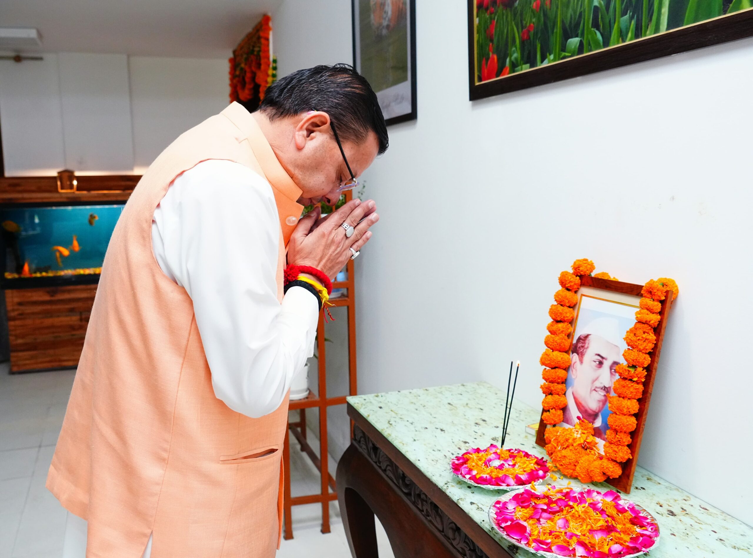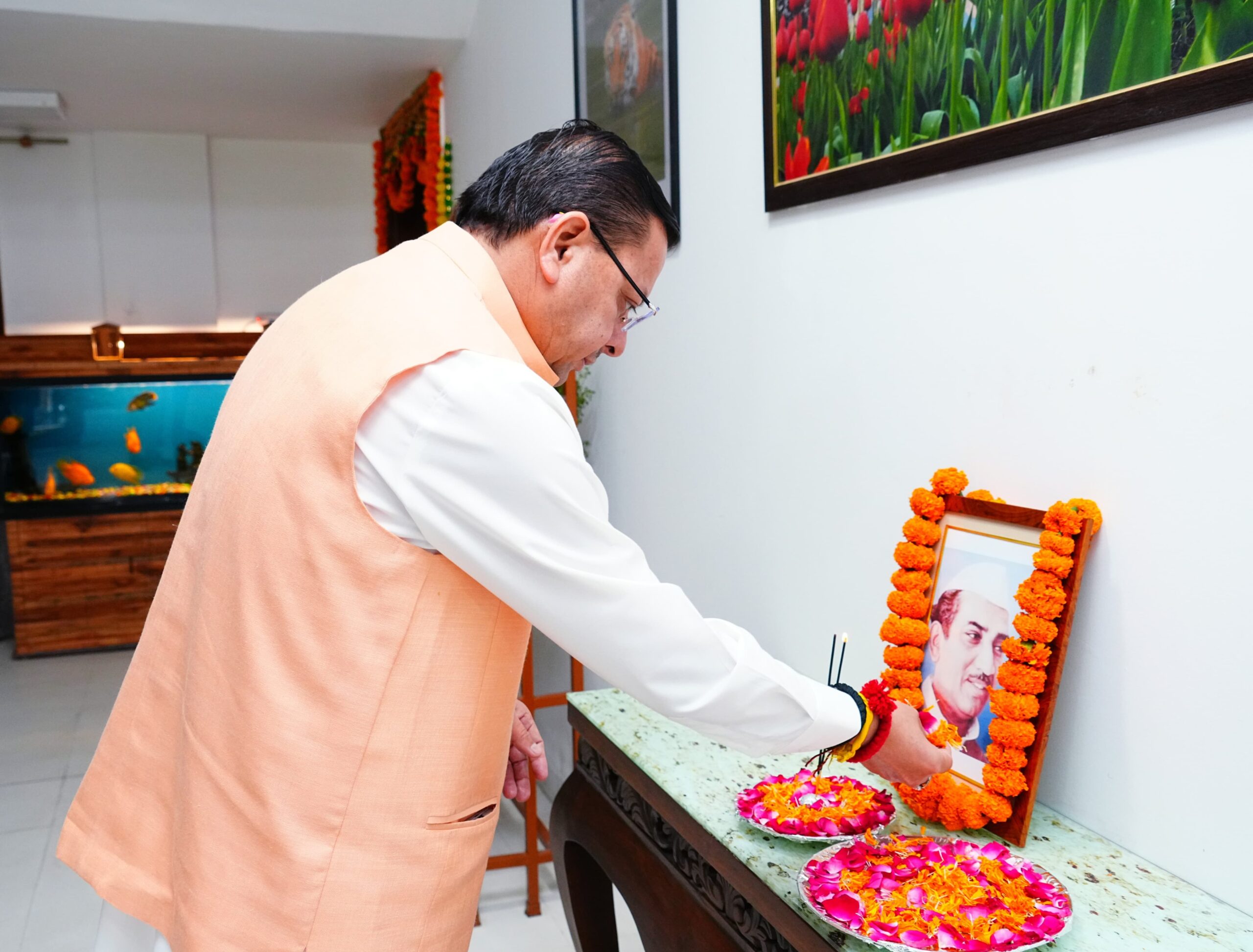 मुख्यमंत्री श्री पुष्कर सिंह धामी ने उत्तर प्रदेश के पूर्व मुख्यमंत्री स्वर्गीय श्री हेमवती नंदन बहुगुणा की पुण्य तिथि के अवसर पर मुख्यमंत्री आवास में उनके चित्र पर श्रद्धा सुमन अर्पित कर उन्हें भावपूर्ण श्रद्धांजलि दी।