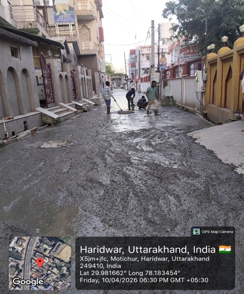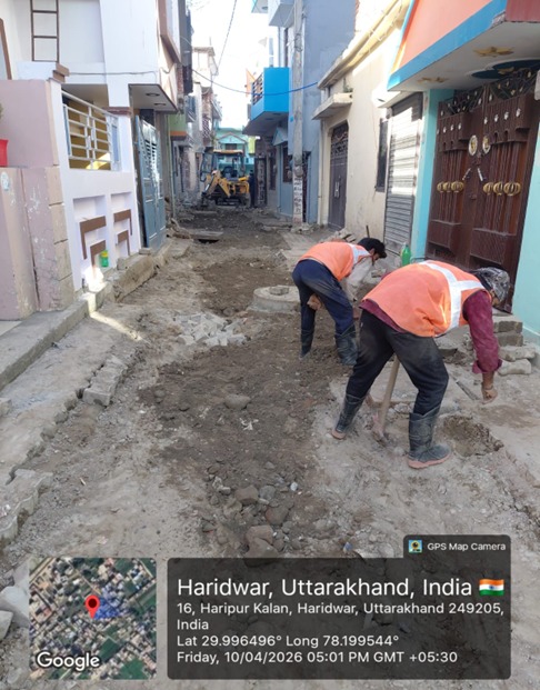परियोजना प्रबंधक निर्माण एवं अनुरक्षण इकाई गंगा उत्तराखंड पेयजल निगम मिनाक्षी मित्तल ने अवगत कराया है कि जिलाधिकारी के निर्देशों के अनुपालन में केएफडब्लयू वित्त पोषित हरिद्वार जलोत्सारण योजना पैकेज 01 एवं पैकेज 02 के अंतर्गत कराए जा रहे सड़क पुनर्निर्माण संबंधी कार्य जिसके तहत 09 अप्रैल एवं 10 अप्रैल तक किए गए निर्माण कार्यों का विवरण निम्नवत है जिसमें- पैकेज 01 में प्रेम विहार कॉलोनी सीसी रोड निर्माण कार्य 31 मीटर, मुखिया गली सीसी रोड निर्माण कार्य 8.5 मीटर, साईं गली सीसी रोड 32 मीटर,रानी गली सिसी रोड 41 मीटर, शिवमूर्ति चौक (बी.टी रोड बाय पी.डब्लू.डी) निर्माण कार्य 180 मीटर तथा कुल 292.50 मीटर निर्माण कार्य पूर्ण कर लिया गया है। तथा पैकेज 02 के अंतर्गत शिवानीपुरम में सीसी रोड निर्माण कार्य 6 मीटर, द्वारका विहार(पेवर ब्लॉक) 9 मीटर, राज विहार फेस 2 पेवर ब्लॉक 26 मीटर, राजा गार्डन सीसी रोड 67 मीटर,मोहन एनक्लेव सीसी रोड 26 मीटर कार्य पूर्ण करते हुए कुल 134 मीटर निर्माण कार्य पूर्ण कर लिया गया है ।