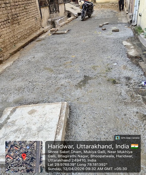 परियोजना प्रबंधक निर्माण एवं अनुरक्षण इकाई गंगा उत्तराखंड पेयजल निगम मिनाक्षी मित्तल ने अवगत कराया है कि जिलाधिकारी के निर्देशों के अनुपालन में केएफडब्लयू वित्त पोषित हरिद्वार जलोत्सारण योजना पैकेज 01 एवं पैकेज 02 के अंतर्गत कराए जा रहे सड़क पुनर्निर्माण संबंधी कार्य जिसके तहत ११ अप्रैल को किए गए निर्माण कार्यों का विवरण निम्नवत है जिसमें- पैकेज 01 में इंटर कालेज रोड सीसी रोड निर्माण कार्य 60 मीटर, गली. नम्बर 6 सीसी रोड निर्माण कार्य 15 मीटर, रानी गली सीसी रोड 40 मीटर, मनसा देवी द्बार से कोतवाली अपर रोड़ जोन – सी (बी.टी रोड बाय पी.डब्लू.डी) निर्माण कार्य 160 मीटर तथा कुल 585 मीटर निर्माण कार्य पूर्ण कर लिया गया है। तथा पैकेज 02 के अंतर्गत शिवानीपुरम में सीसी रोड निर्माण कार्य 30 मीटर, द्वारका विहार(पेवर ब्लॉक) 15 मीटर, लोकसेवा आयोग सीसी रोड 80 मीटर कार्य पूर्ण करते हुए कुल 125 मीटर निर्माण कार्य पूर्ण कर लिया गया है ।