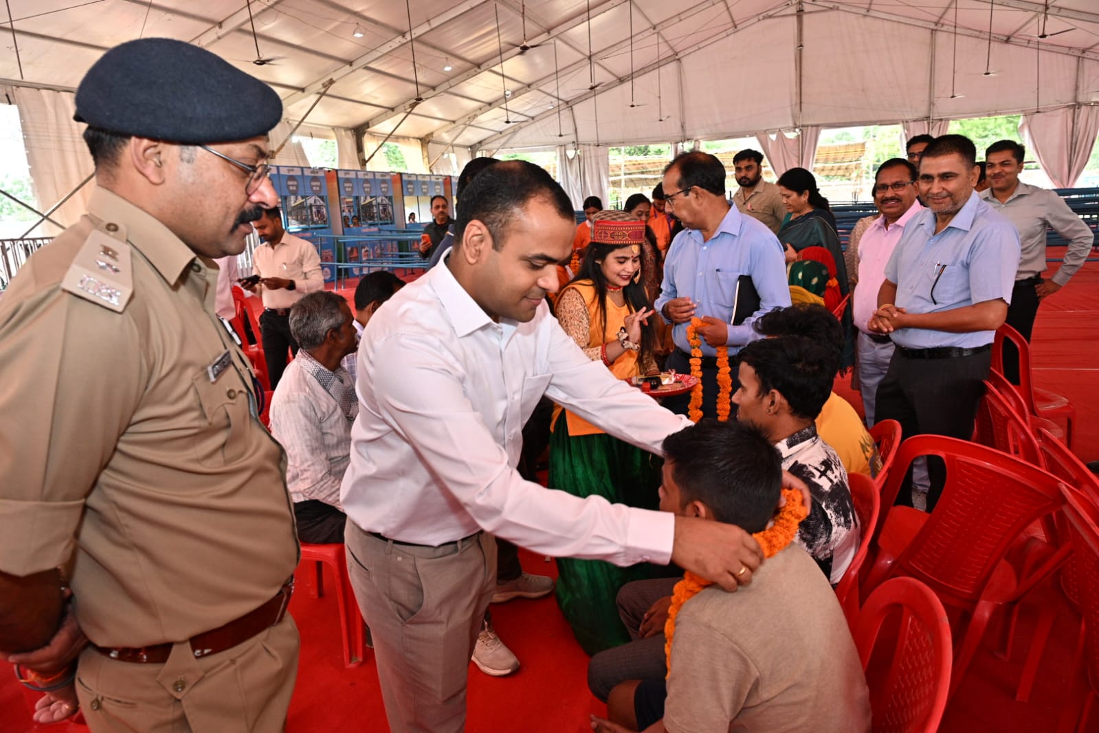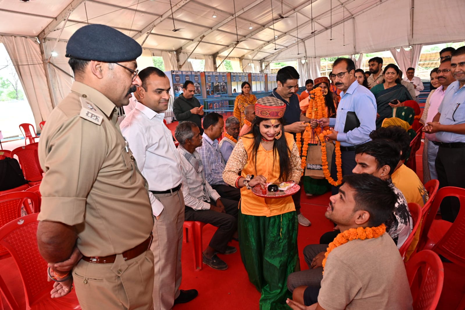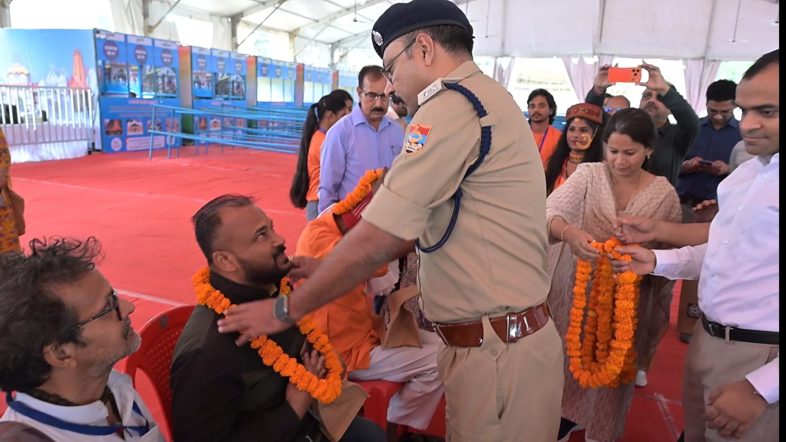 अतिथि देवो भव की परम्परा से फूल मालाओं एवं टिका चंदन से जिलाधिकारी मयूर दीक्षित एवं वरिष्ठ पुलिस अधीक्षक  नवनीत सिंह भुल्लर ने किया गया तीर्थ यात्रियों का स्वागत