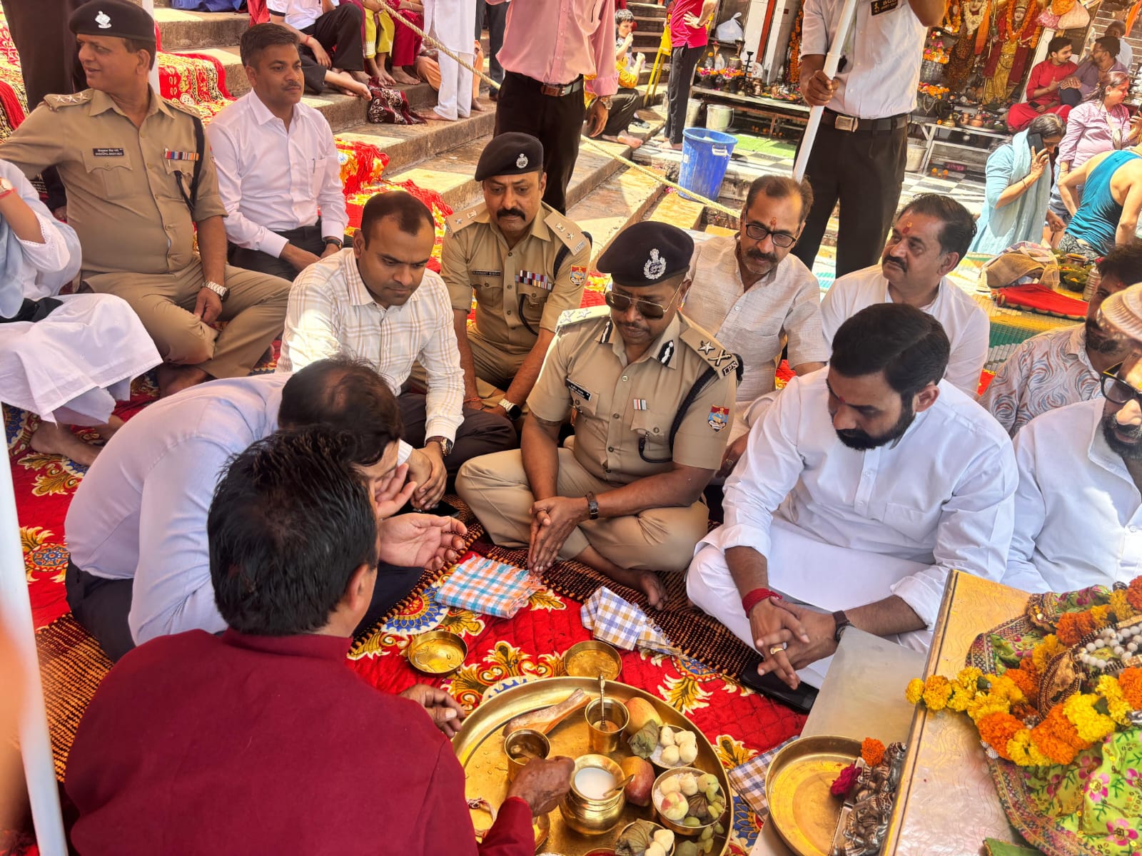 चारधाम यात्रा को निर्विघ्न,सुरक्षित एवं सकुशल ढंग से सम्पन्न कराने के लिए आज हर की पैड़ी पर आयुक्त गढ़वाल मण्डल विनय शंकर पांडे एवं आईजी गढ़वाल राजीव स्वरूप ने मां गंगा की पूजा अर्चना कर कुशल यात्रा संचालन की प्रार्थना