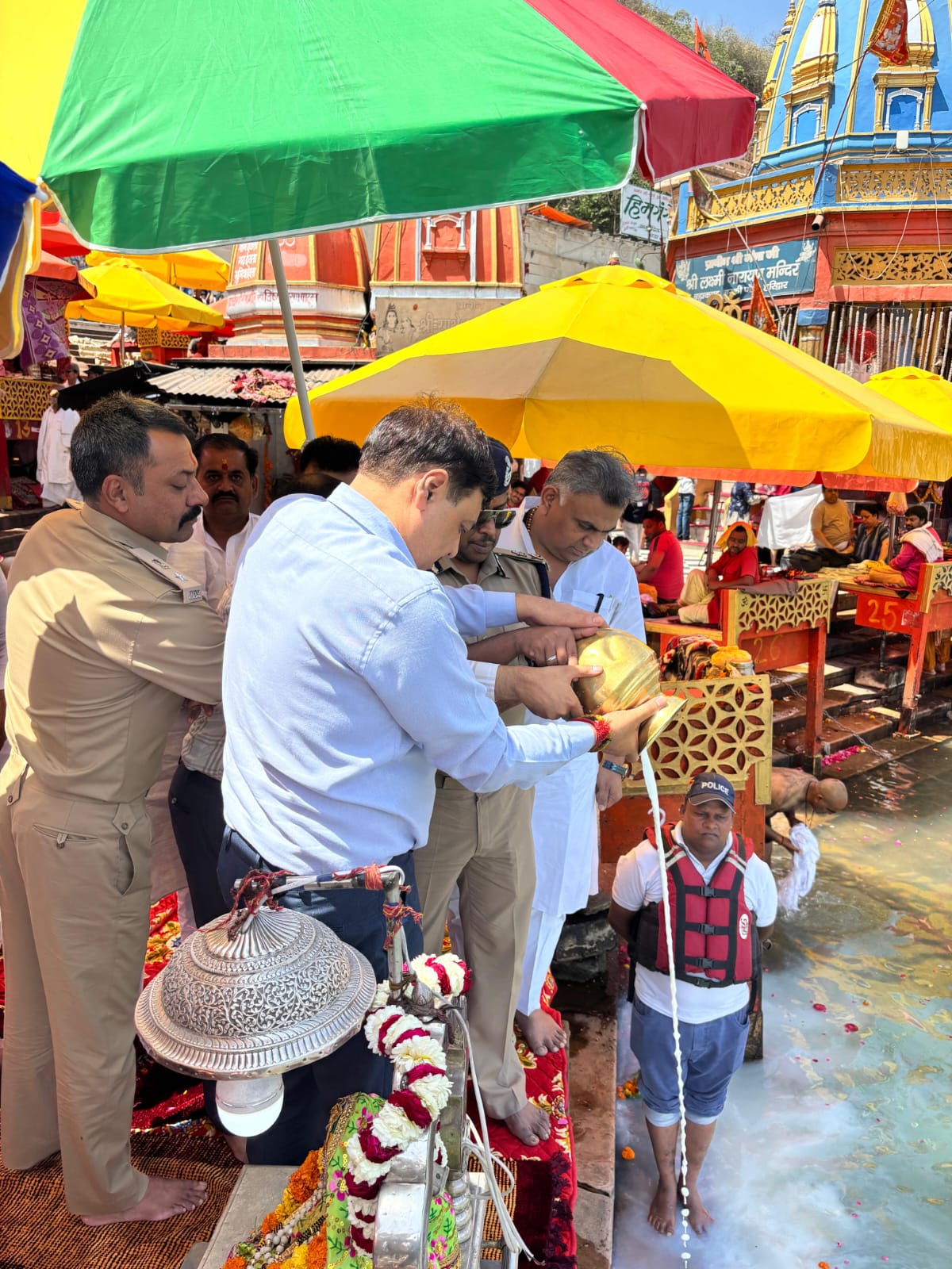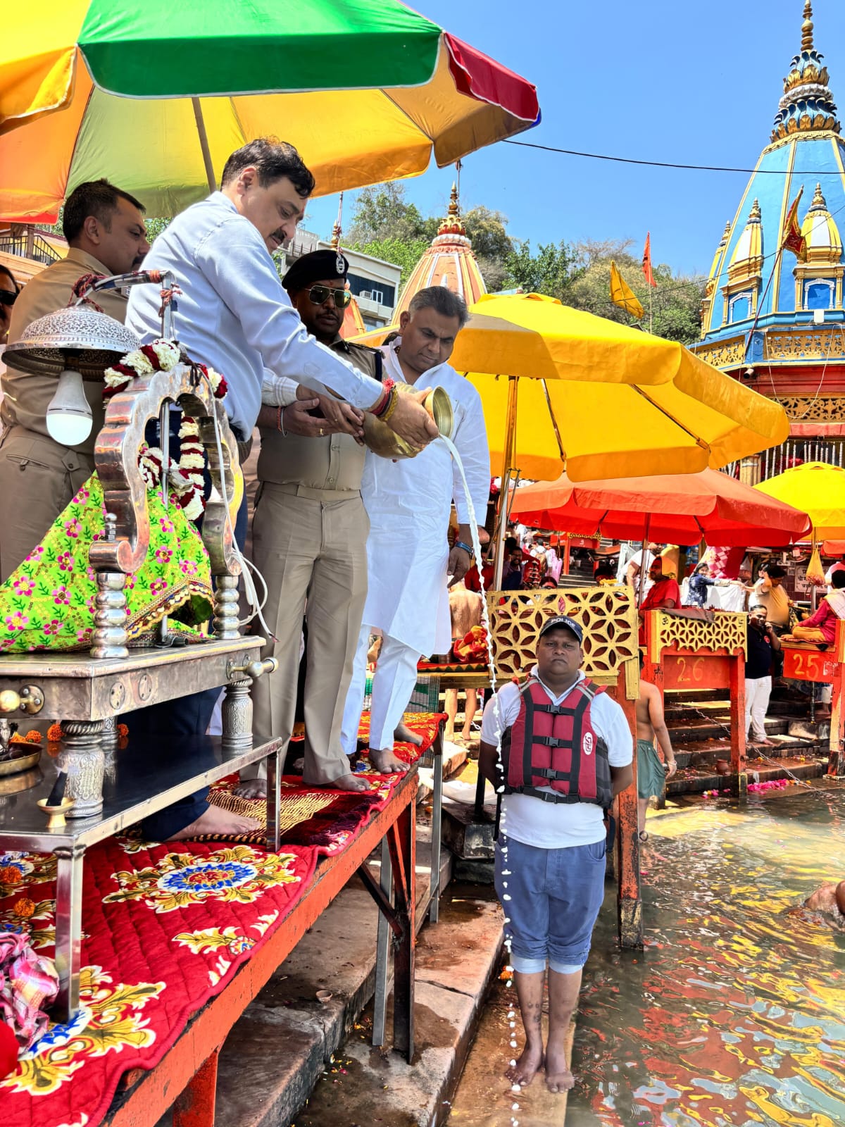 हरिद्वार।चारधाम यात्रा शुरू होने से एक दिन पूर्व आयुक्त गढ़वाल मंडल विनय शंकर पांडे,आईजी गढ़वाल राजीव स्वरूप, जिलाधिकारी मयूर दीक्षित एवं वरिष्ठ पुलिस अधीक्षक नवनीत सिंह भुल्लर ने हर की पैड़ी में मां गंगा की पूजा अर्चना कर चार धाम यात्रा को निर्विघ्न,सुरक्षित एवं कुशलता पूर्वक संपन्न कराने के लिए मां गंगा से प्रार्थना की।