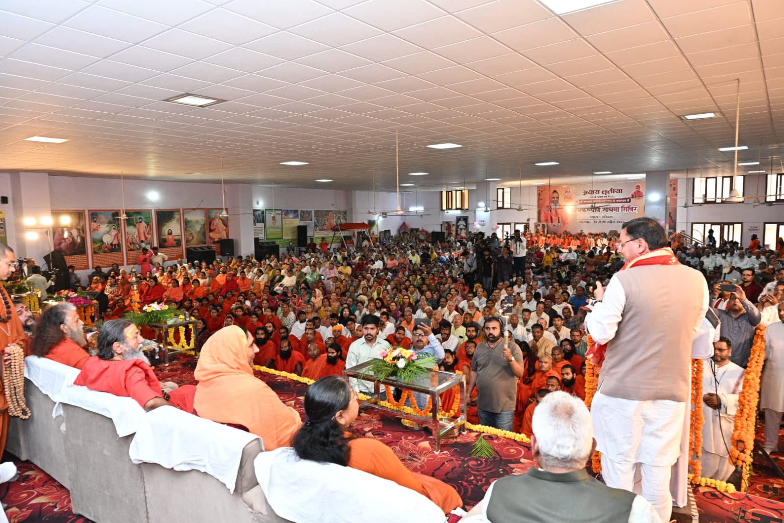 इस अवसर पर पूज्य स्वामी बालकानंद जी महाराज, पूज्य बीकानेर स्वामी विशोकानन्द भारती जी महाराज, योग ऋषि पूज्य स्वामी रामदेव जी महाराज,साध्वी ऋतंभरा (दीदी मां), पूज्य स्वामी महाराज अविचल दास जी, अखिल भारतीय अखाड़ा परिषद के अध्यक्ष श्री महंत रवींद्र पूरी महाराज,निरंजनी अखाड़े के आचार्य महामंडलेश्वर स्वामी कैलाशानंद गिरि महाराज, आचार्य स्वामी ज्योतिर्यानंद गिरी महाराज,पूज्य स्वामी मुनि जी महाराज, महंत ज्ञानदेव सिंह जी महाराज ,चिदानंद मुनि जी महाराज, पूज्य आचार्य बालकृष्ण जी महाराज, स्वामी अनंत देव जी महाराज, पूज्य बाबा निर्मल दास जी महाराज, जितेंद्रानंद सरस्वती महाराज, अध्यक्ष राष्ट्रीय पिछड़ा वर्ग आयोग पूज्य साध्वी निरंजन ज्योति जी, महामंडलेश्वर पूज्य स्वामी हरिचेतनानंद जी महाराज, महामंडलेश्वर पूज्य आत्मानंद मुनि जी महाराज, महामंडलेश्वर ज्योतिर्मयानंद जी महाराज,राष्ट्रीय मंत्री हिंदू परिषद अशोक तिवारी, पंचायतीराज एवं आपदा प्रबंधन मंत्री मदन कौशिक जी, परिवहन मंत्री प्रदीप बत्रा, जिलाधिकारी मयूर दीक्षित,वरिष्ठ पुलिस अधीक्षक नवनीत सिंह भुल्लर,मुख्य नगर आयुक्त नंदन कुमार,एसपी सिटी अभय प्रताप सिंह सहित देशभर से आए संत महात्मा एवं श्रद्धालु मौजूद रहे।