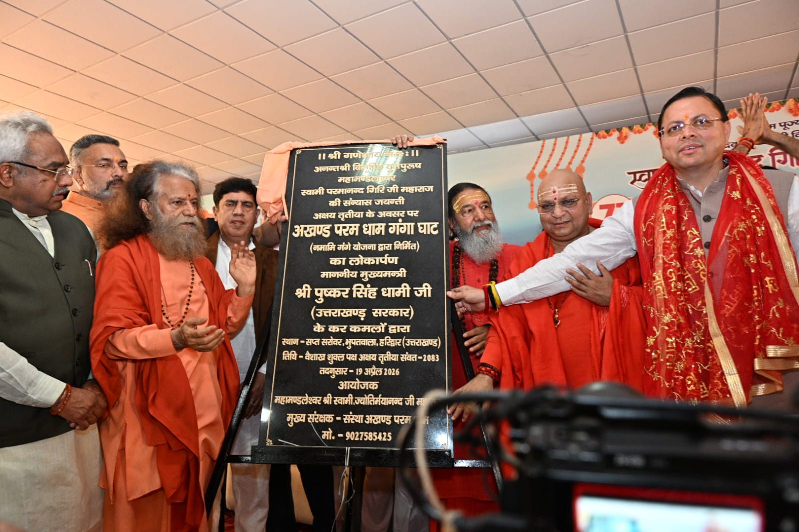 हरिद्वार।मुख्यमंत्री श्री पुष्कर सिंह धामी ने अक्षय तृतीया के पावन अवसर पर आयोजित श्री अखण्ड परमधाम गंगा घाट के लोकार्पण समारोह एवं स्वामी परमानन्द गिरि जी महाराज की 71वीं संन्यास जयंती के उपलक्ष्य में आयोजित कार्यक्रम में प्रतिभाग किया।