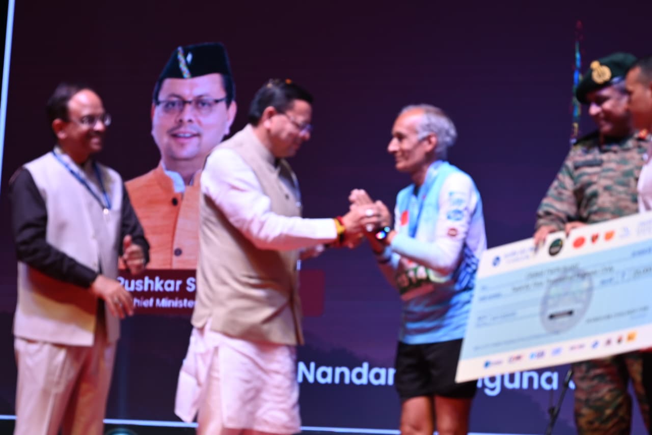 मुख्यमंत्री ने सूर्य देवभूमि चैलेंज के इस दूसरे संस्करण में भारतीय सेना के100 जांबाज़ जवानों के साथ- साथ देशभर से आए लगभग 200 साहसिक ट्रैकर्स जिन्होंने इस हाईटियूड मैराथन में भाग लेने वाले जिन्हने केदार-बद्री ट्रेल में हेलंग से कलगोट और कलगोट से मंडल होते हुए उखीमठ तक 113 किलोमीटर के अत्यंतदुर्गम और चुनौतीपूर्ण पर्वतीय मागों को पार करने में सफलता प्राप्त की है। उन सभी प्रतिभागियों को हार्दिक बधाई दी, जिन्होंने इस चुनौतीपूर्ण अभियान में भाग लेकर अपने साहस, धैर्य और दृढ़ संकल्प का उत्कृष्ट परिचय दिया है।