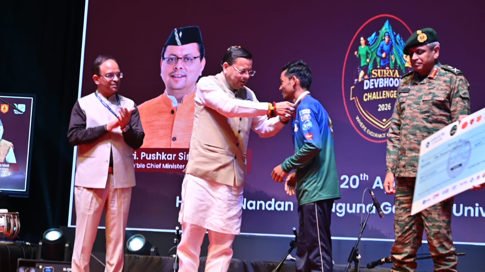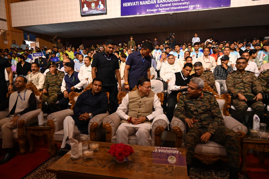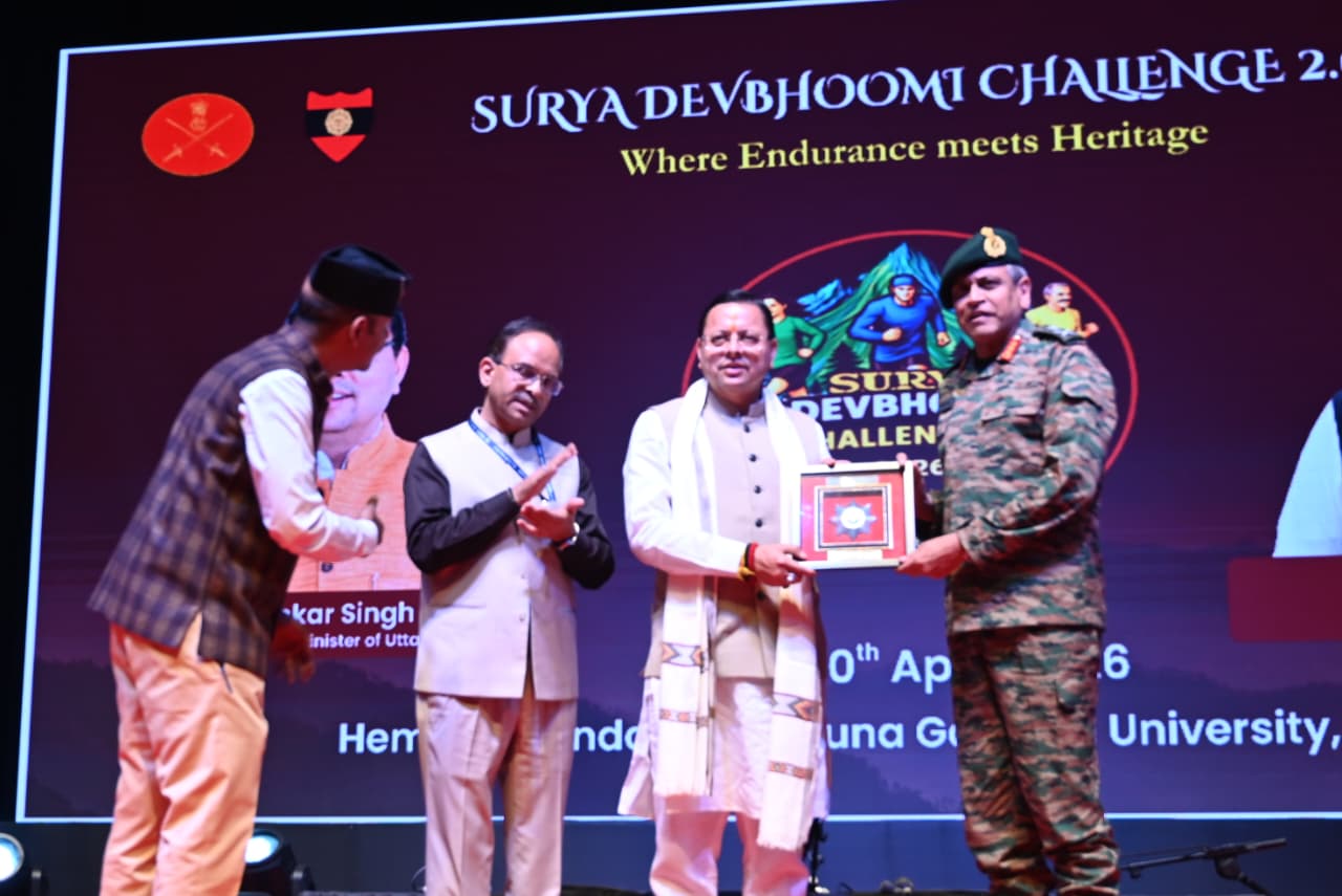 भारतीय सेना और उत्तराखंड पर्यटन के संयुक्त तत्वावधान में आयोजित सूर्य देवभूमि चैलेंज के द्वितीय संस्करण का गढ़वाल विश्वविद्यालय के चौरास परिसर में समापन समारोह के अवसर पर बतौर मुख्य अतिथि मुख्यमंत्री श्री पुष्कर सिंह धामी ने कार्यक्रम में प्रतिभाग करते हुए समारोह में उपस्थित सभी सैन्य अधिकारियों, वीर जवानों तथा देशभर से आए प्रतिभागियों एवं यूवा साथियों का हार्दिक स्वागत एवं अभिनंदन किया।