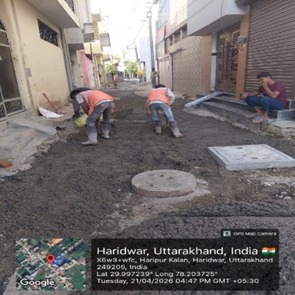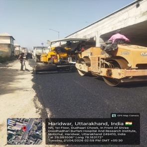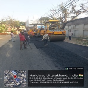 परियोजना प्रबंधक निर्माण एवं अनुरक्षण इकाई गंगा उत्तराखंड पेयजल निगम मिनाक्षी मित्तल ने अवगत कराया है कि जिलाधिकारी के निर्देशों के अनुपालन में केएफडब्लयू वित्त पोषित हरिद्वार जलोत्सारण योजना पैकेज 01 एवं पैकेज 02 के अंतर्गत कराए जा रहे सड़क पुनर्निर्माण संबंधी कार्य जिसके तहत 21 अप्रैल को किए गए निर्माण कार्यों का विवरण निम्नवत है जिसमें- पैकेज 01 में  बिटुमिनस रोड़ वर्क (इंडस्ट्रीयल एरिया) 410 मीटर, बिटुमिनस रोड़ वर्क दुधाधारी चौक 124 मीटर, इंटर कॉलेज रोड सीसी रोड 11 मीटर, पीपल वाली गली चौक टाइल्स रोड 25 मीटर,बिरला फार्म सीसी रोड 18 मीटर कार्य पूर्ण कर लिया गया है तथा कुल 588 मीटर कार्य पूर्ण कर लिया गया है। तथा पैकेज 02 के अंतर्गत द्वारका विहार पावर ब्लॉक 13 मीटर, मोहन इंक्लेव सीसी रोड 40 मीटर कार्य पूर्ण करते हुए कुल 53 मीटर निर्माण कार्य पूर्ण कर लिया गया है ।