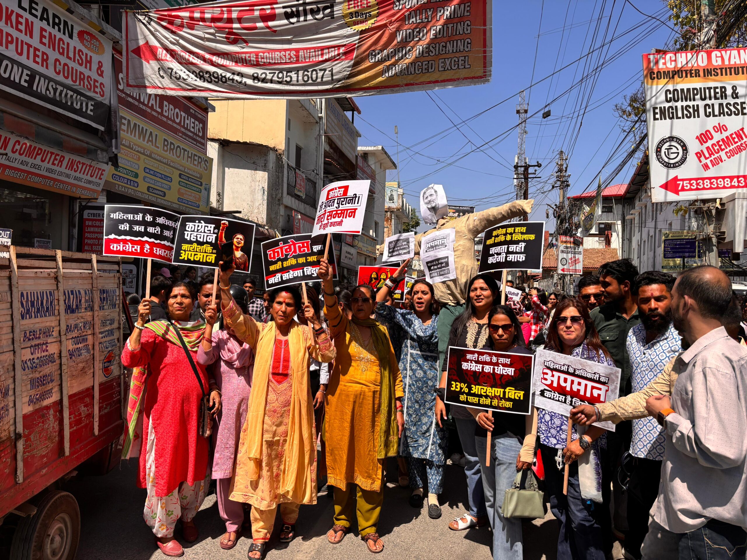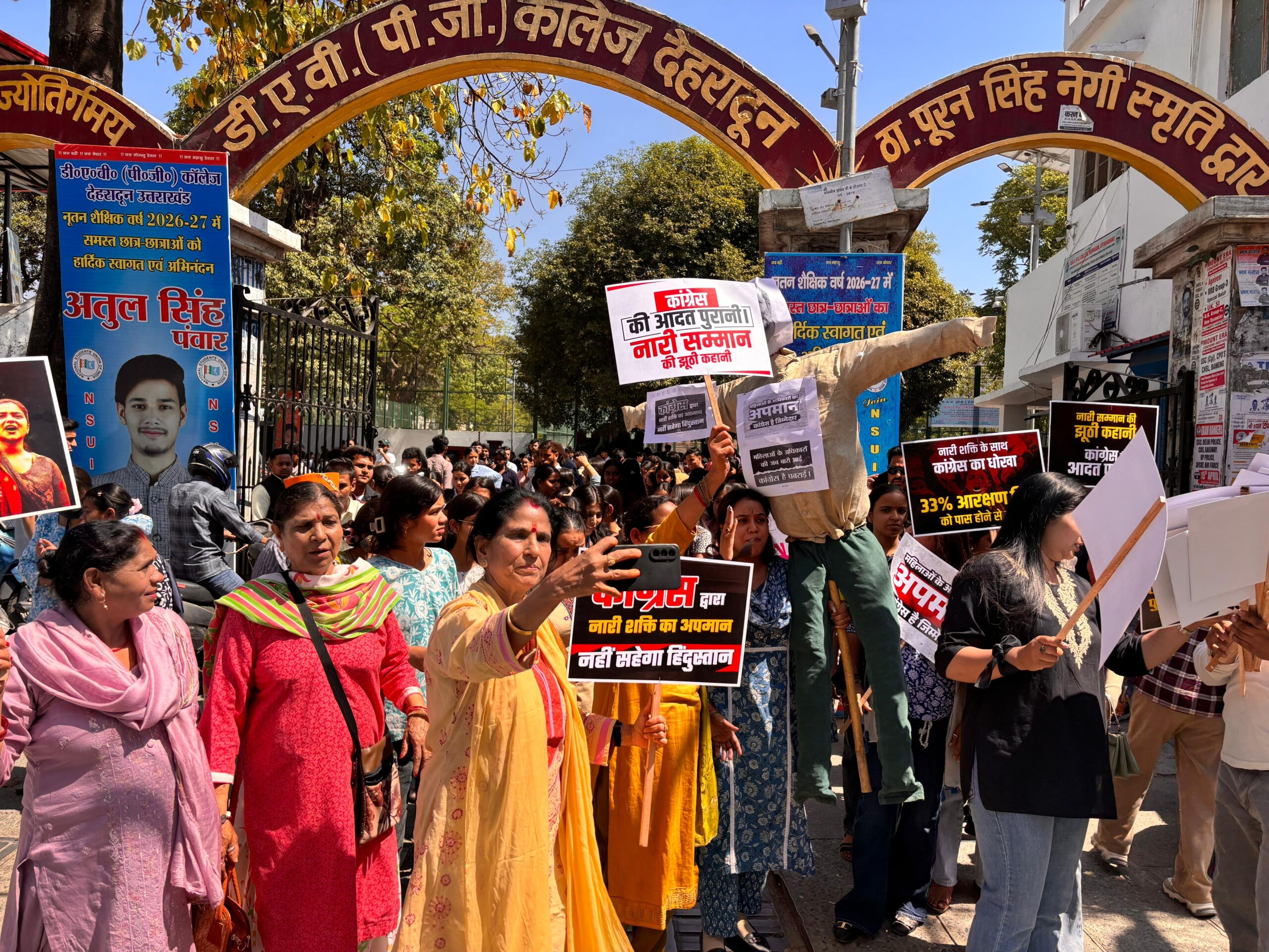 देहरादून। संसद में विपक्षी सांसदों द्वारा ‘नारी शक्ति वंदन अधिनियम’ का समर्थन न किए जाने के तीव्र विरोध में आज डीएवी महाविद्यालय की छात्राओं एवं महिलाओं ने डीएवी कॉलेज चौक पर जोरदार प्रदर्शन किया।
