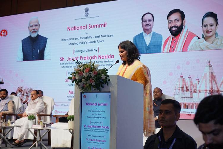 केंद्रीय स्वास्थ्य एवं परिवार कल्याण मंत्री श्री जगत प्रकाश नड्डा ने आज हरियाणा के मुख्यमंत्री श्री नायब सिंह सैनी और हरियाणा की स्वास्थ्य मंत्री श्रीमती आरती सिंह राव की उपस्थिति में नवाचार एवं समावेशिता: भारत के स्वास्थ्य भविष्य को आकार देने वाली सर्वोत्तम प्रथाएं विषय पर 10वें राष्ट्रीय स्‍वास्‍थ्‍य शिखर सम्मेलन का उद्घाटन किया।