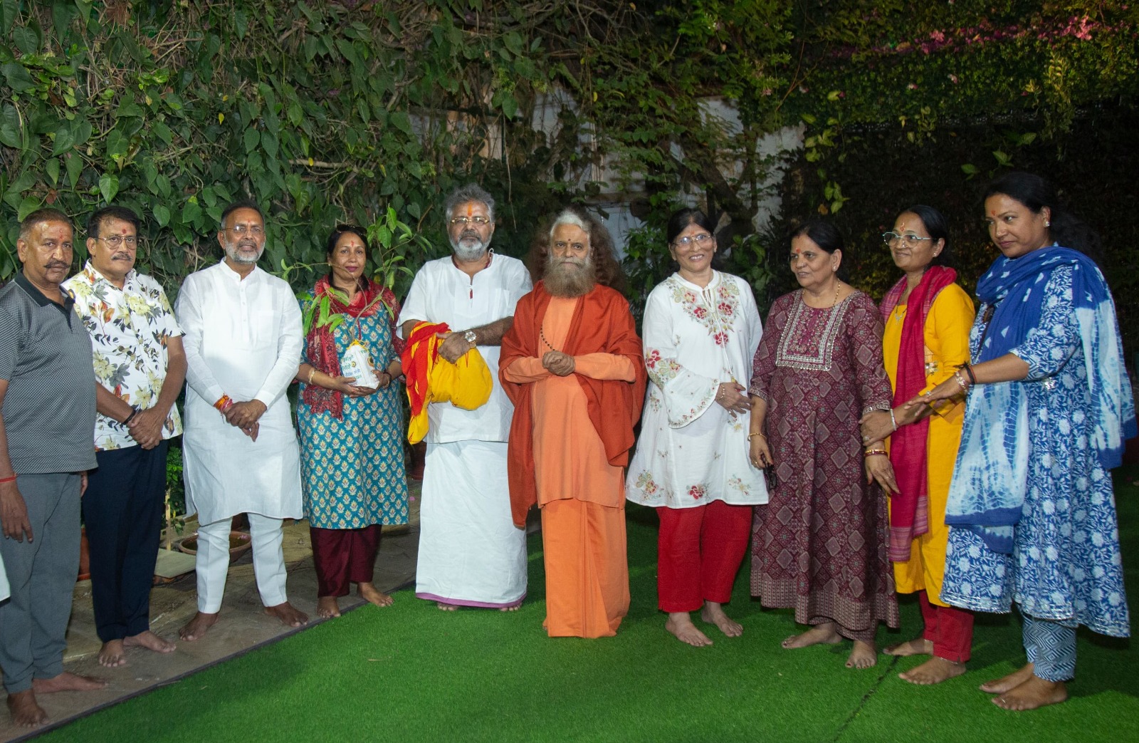 स्वामी चिदानन्द सरस्वती जी और संत मुरलीधर जी ने श्री हीरालाल नागर जी को रूद्राक्ष का दिव्य पौधा आशीर्वाद स्वरूप भेंट किया।
